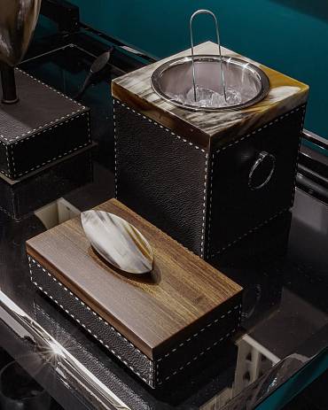 Мы используем только рог зебу Bos Taurus, добываемый с учётом этических норм. Этот материал проходит сложную обработку, требующую мастерства и времени: сначала его отбирают, затем подвергают термообработке, полируют и соединяют вручную, раскрывая естественную красоту текстуры.