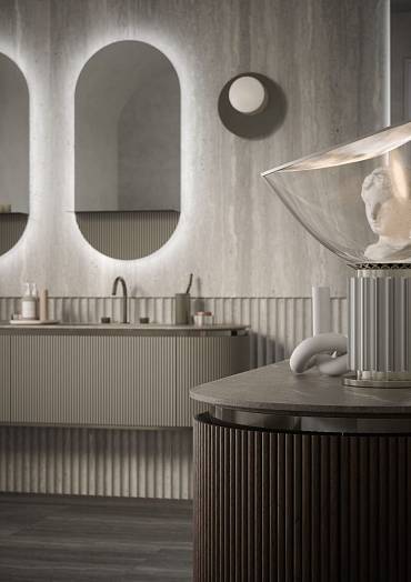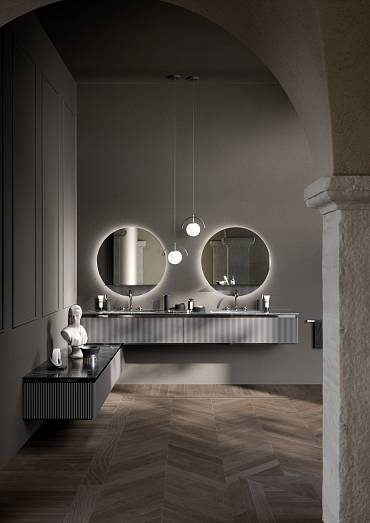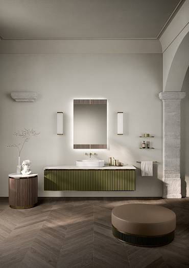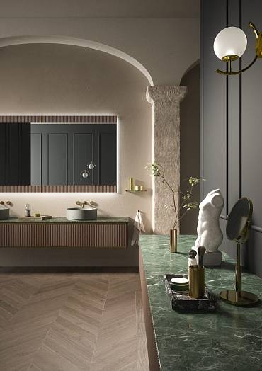 Материал: КОРПУС WALNUT RIBBED /ОТДЕЛКА МЕТАЛЛ:ORO SATINATO/СТОЛЕШНИЦА :CALACATTA GOLD