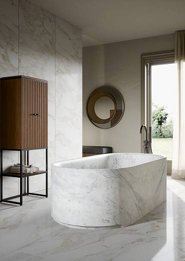 Материал: ОТДЕЛКА: МЕТАЛЛ-NICKEL SATINATO. КОРПУС: ЛАК-SABBIA MAT. СТОЛЕШНИЦА: MARBLE BIANCO CARRARA.