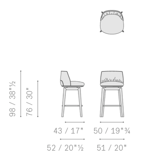 51 х 52 х h 89/98, h cиденья 67 или 76 см