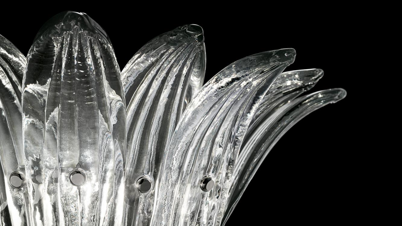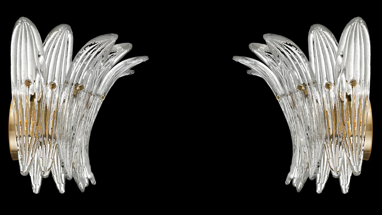 Бра Palmette — это ручная работа высочайшего уровня. Изделие рождается из стилистических изысканий, где исторические мотивы интерпретируются через призму современности. Веера хрустальных листьев предлагают свежий, завораживающий взгляд на ар-деко.