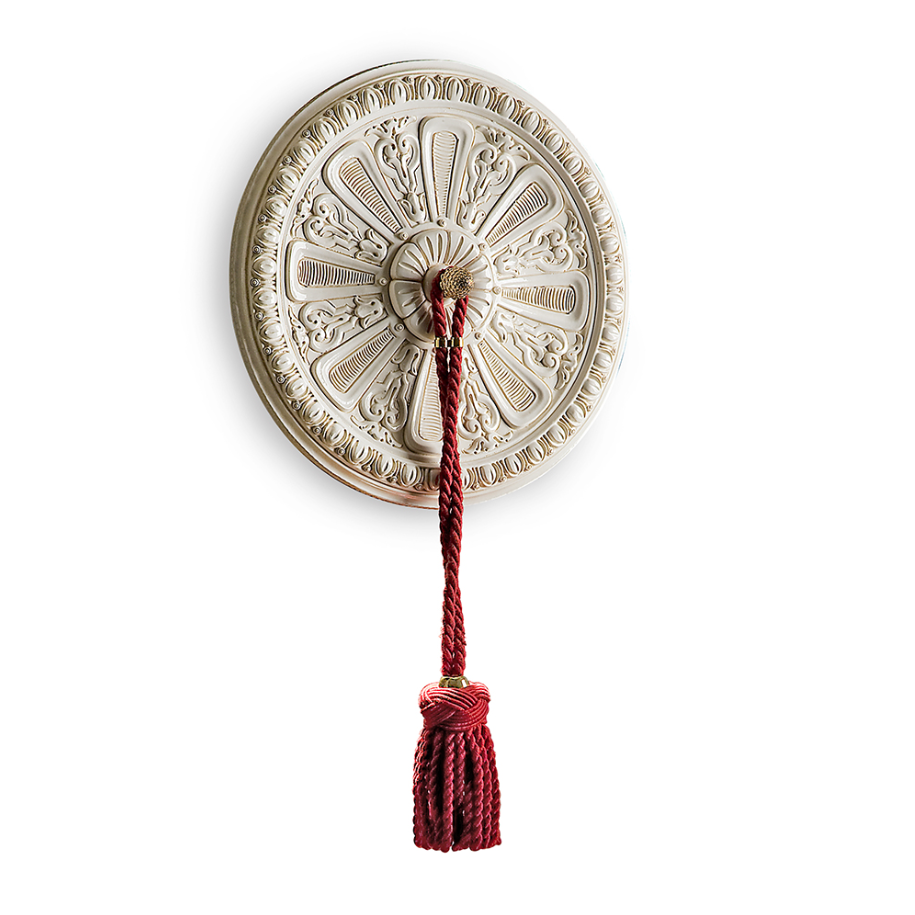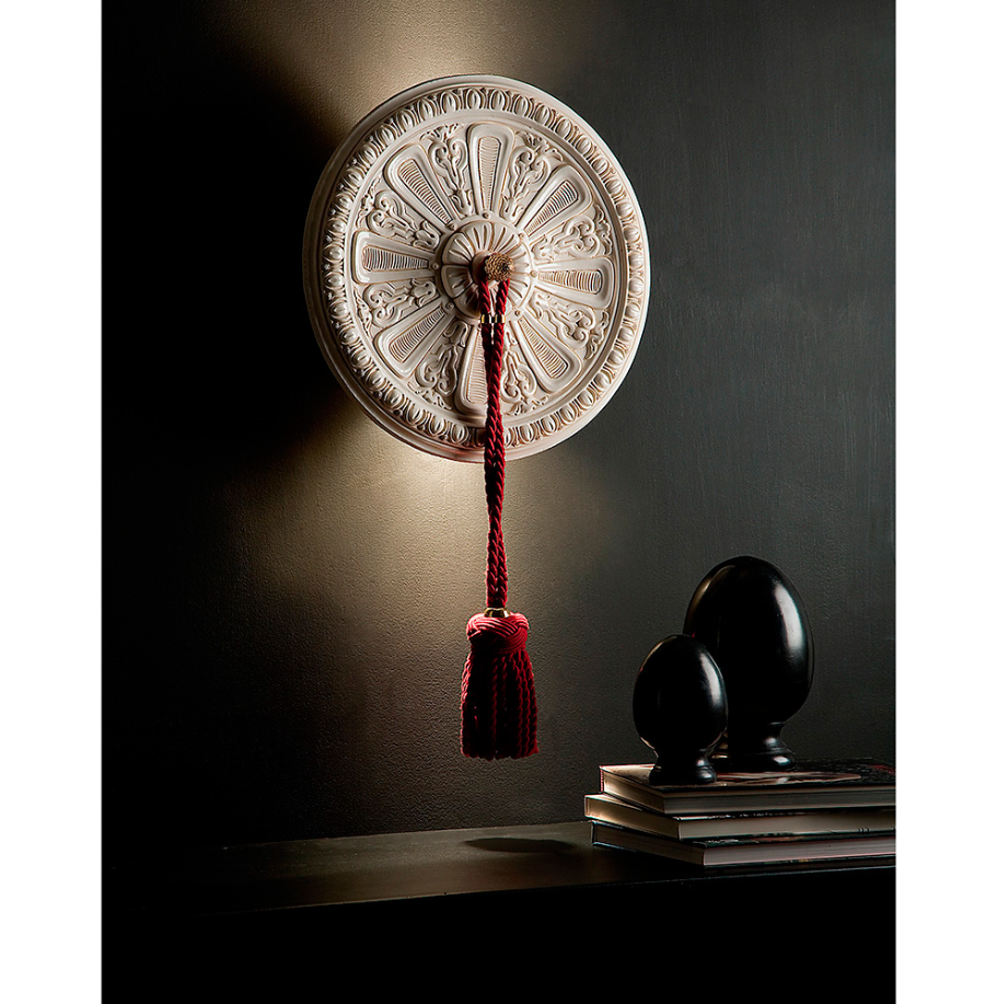 Бронзовое литье, позолота. Декоративный диск из майолики, ручная работа. Красная шелковая кисть.