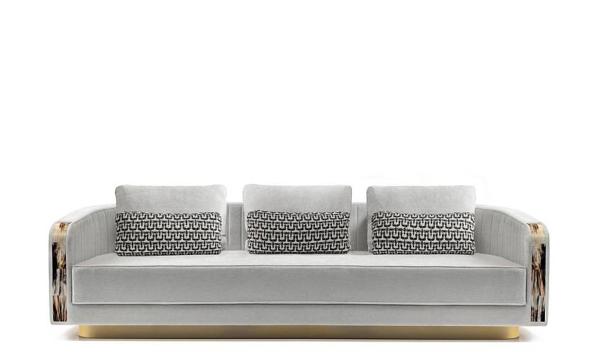 С плавными линиями и мягкими роскошными материалами, диван Afrodite добавит в интерьер изысканность и элегантность. Изогнутые детали из рога создают стильный контраст с обивкой, украшенной стеганым рельефным узором на боковых и задней панелях.