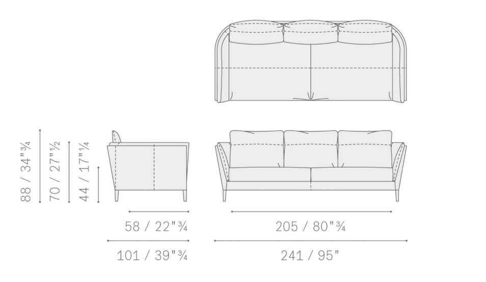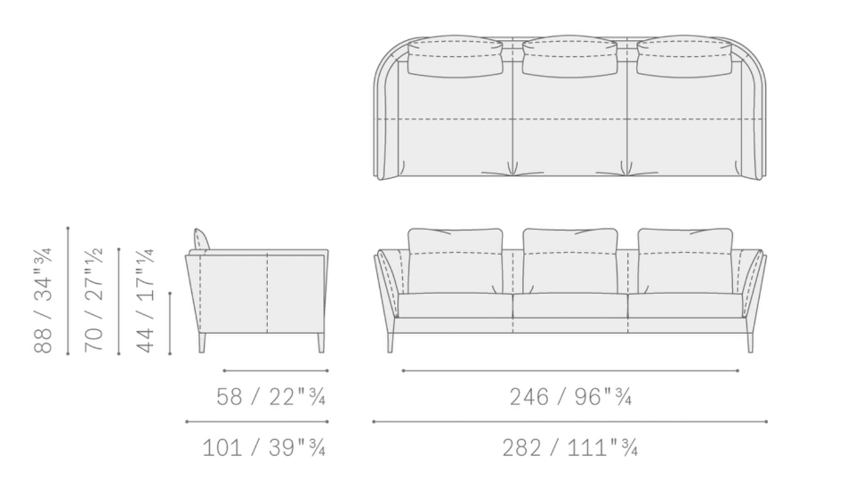200/ 241/ 282 х 101 х h 88, h сиденья 44 см