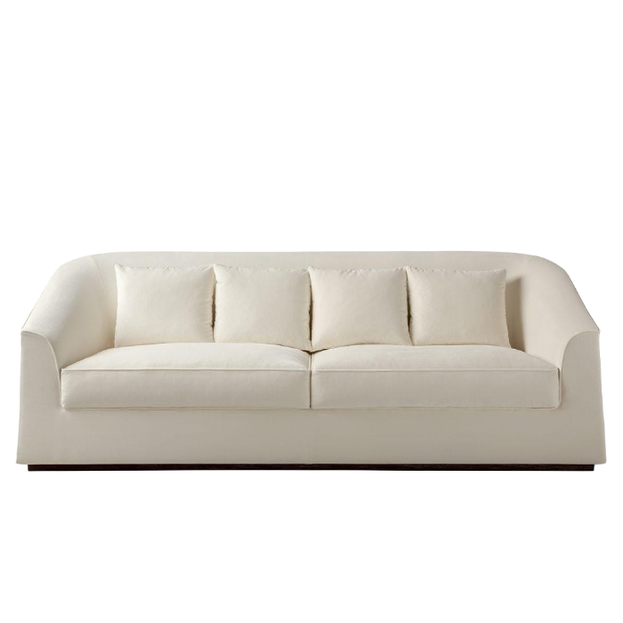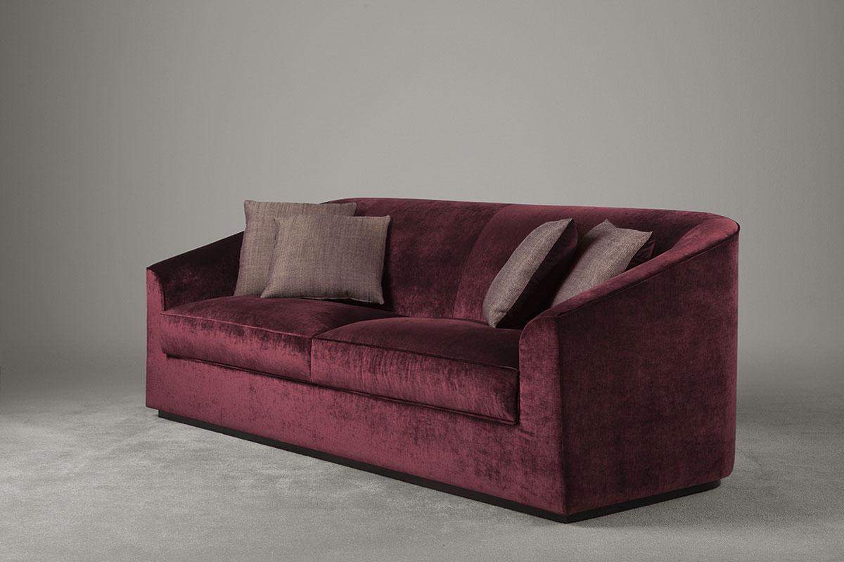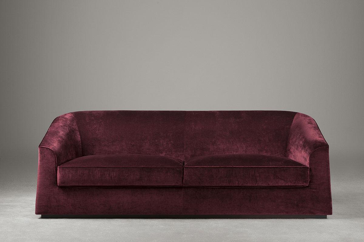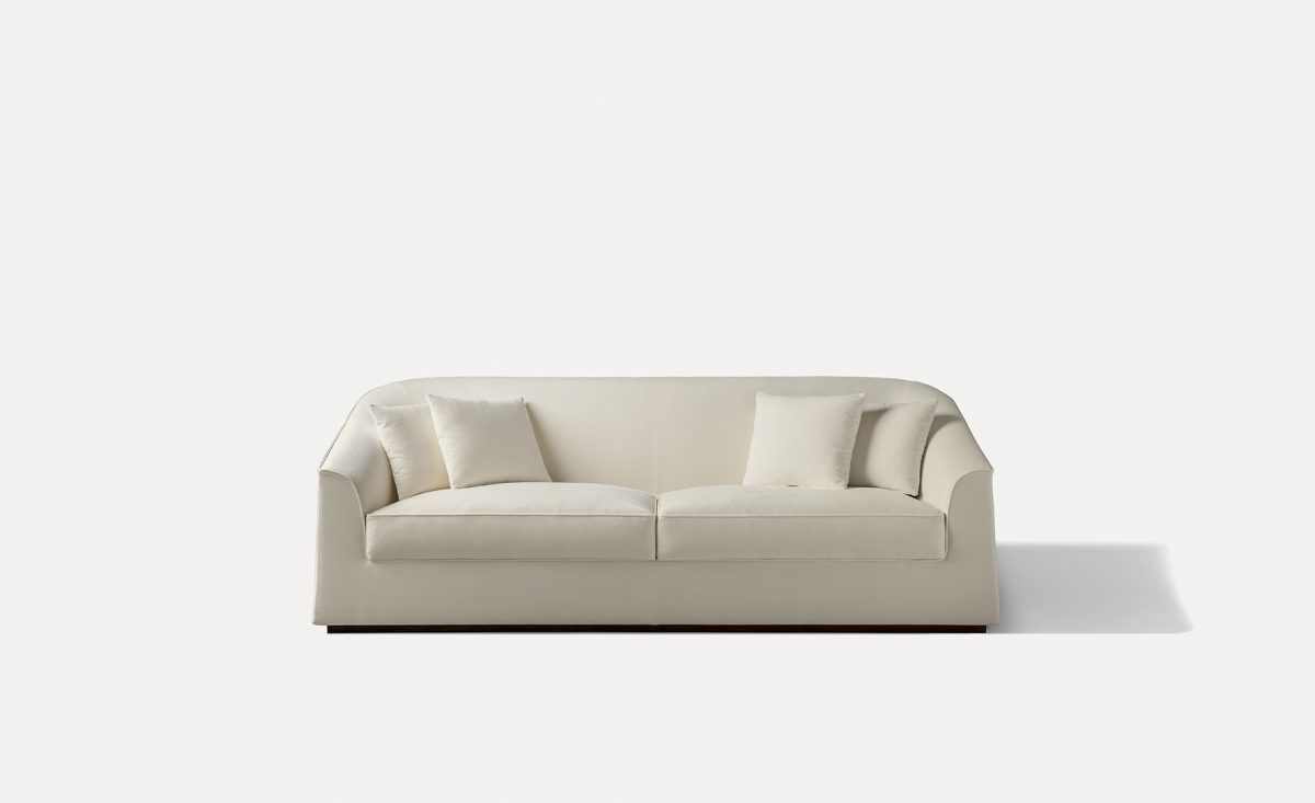 Диван доступен в трех размерах и оснащен прочным основанием из массива дуба или бука, представленным в натуральной деревянной или лакированной отделке.