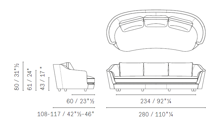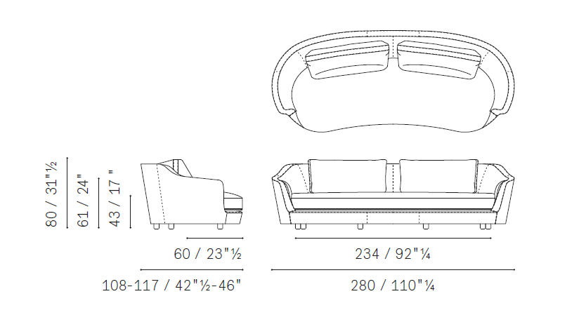 234 / 280 х 117 х h 80, h сиденья 43 см