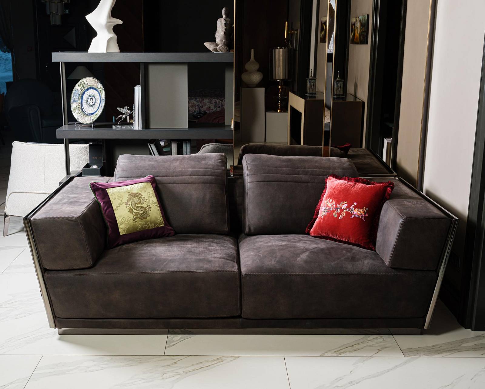 Темно-серый, кожа Antiq T.moro. Металлические детали черный хром. Возможны другие варианты отделки в коже или в ткани под заказ.