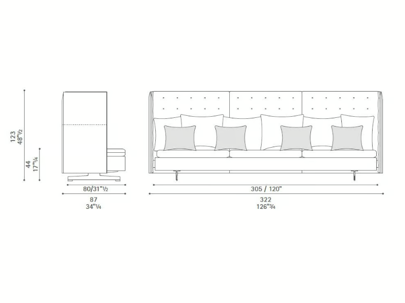 182/ 222/ 262/ 322 х 87 х h 123, h сиденья 44 см