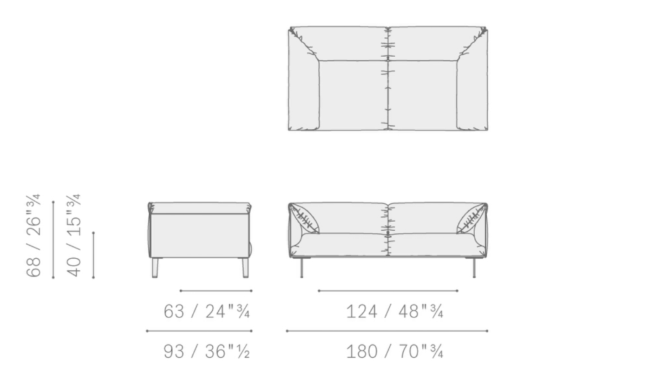 180/ 215/ 250 х 93 х h 68, h сиденья 40 см