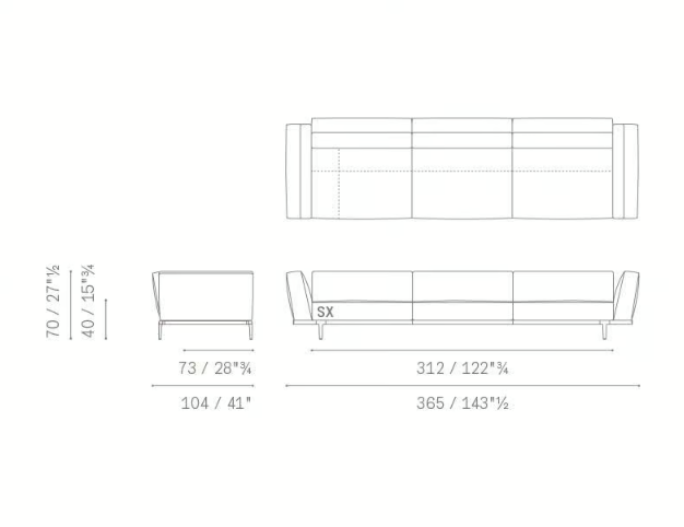 211 – 365 х 104 х h 70, h сиденья 40 см