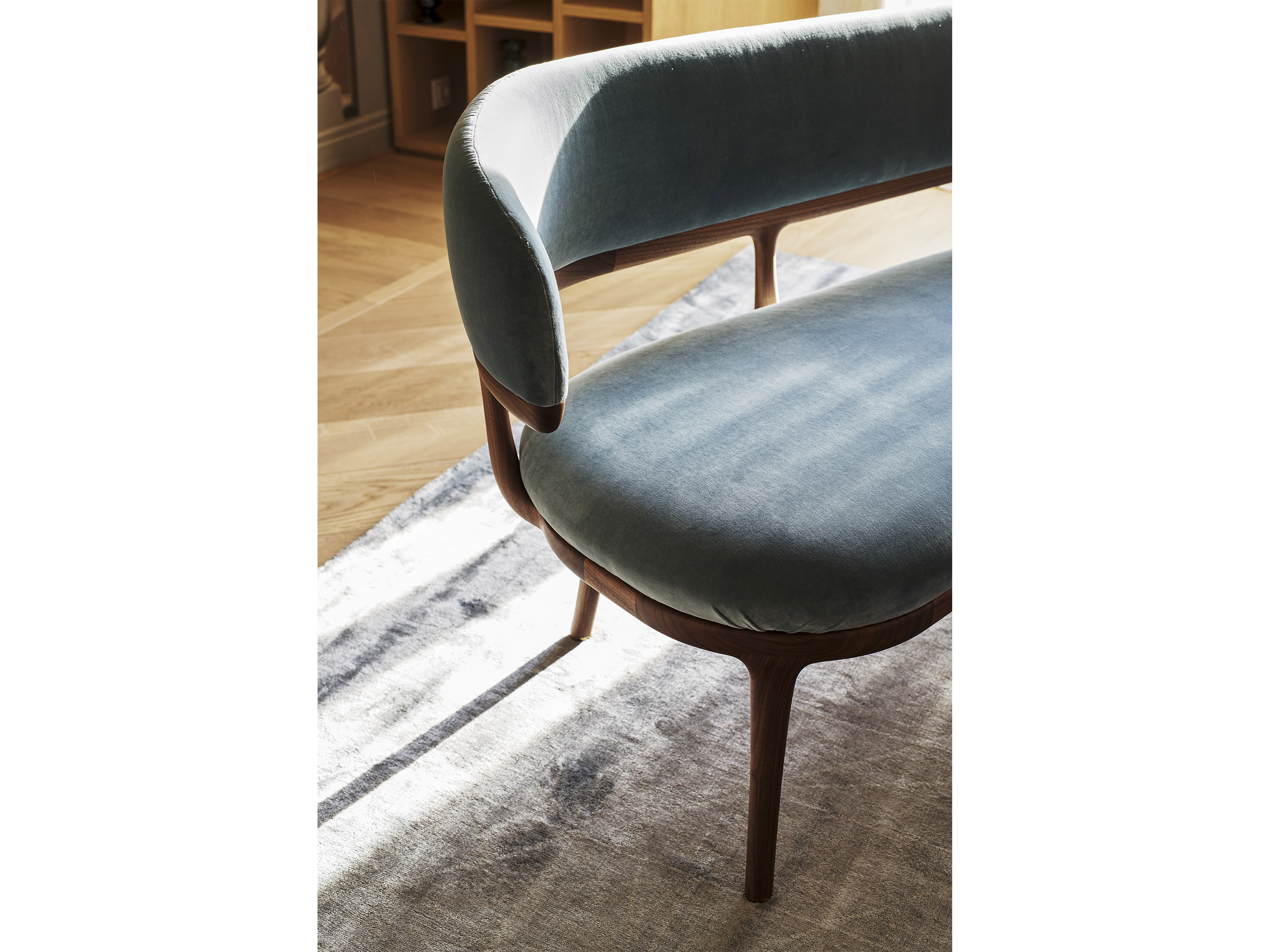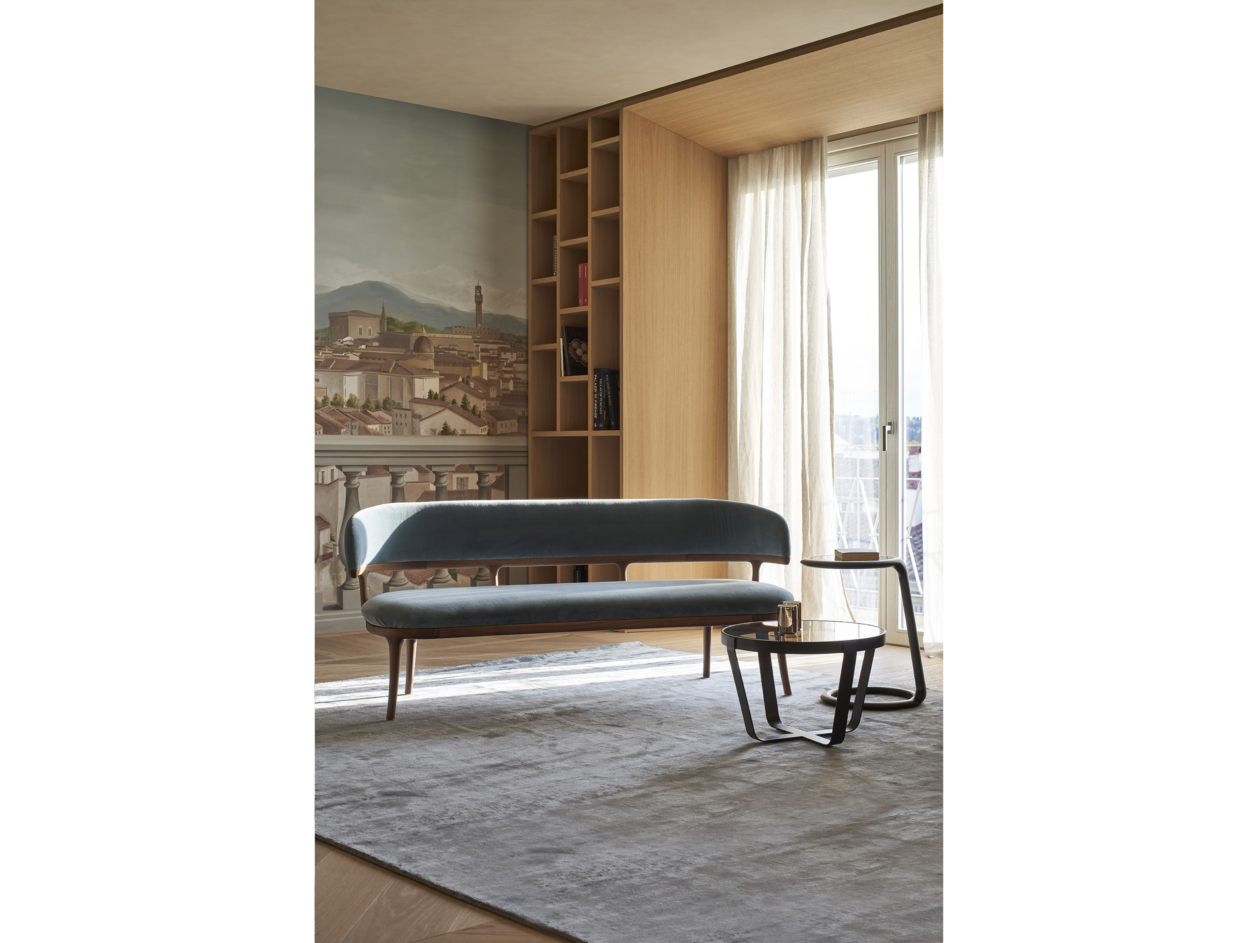 Это имя сразу же напоминает об определенном контексте истории искусства. Peggy G. — небольшой диван с мягким и чистым дизайном, напоминающим великую классику дизайна. При разработке этого предмета Лаззерони черпал вдохновение из диванов XIX века, переосмысливая их в процессе. Каркас изготовлен из массива американского ореха, а сиденье и спинка выполнены из изогнутой фанеры с обивкой из кожи или ткани. Благодаря своей конструкции, простоте линий и подвесной спинке Peggy G. создает ощущение легкости. Его можно гармонично сочетать с Large Flower, чтобы создать идеальный дуэт, несмотря на то, что эти два предмета были созданы с разницей более 10 лет.