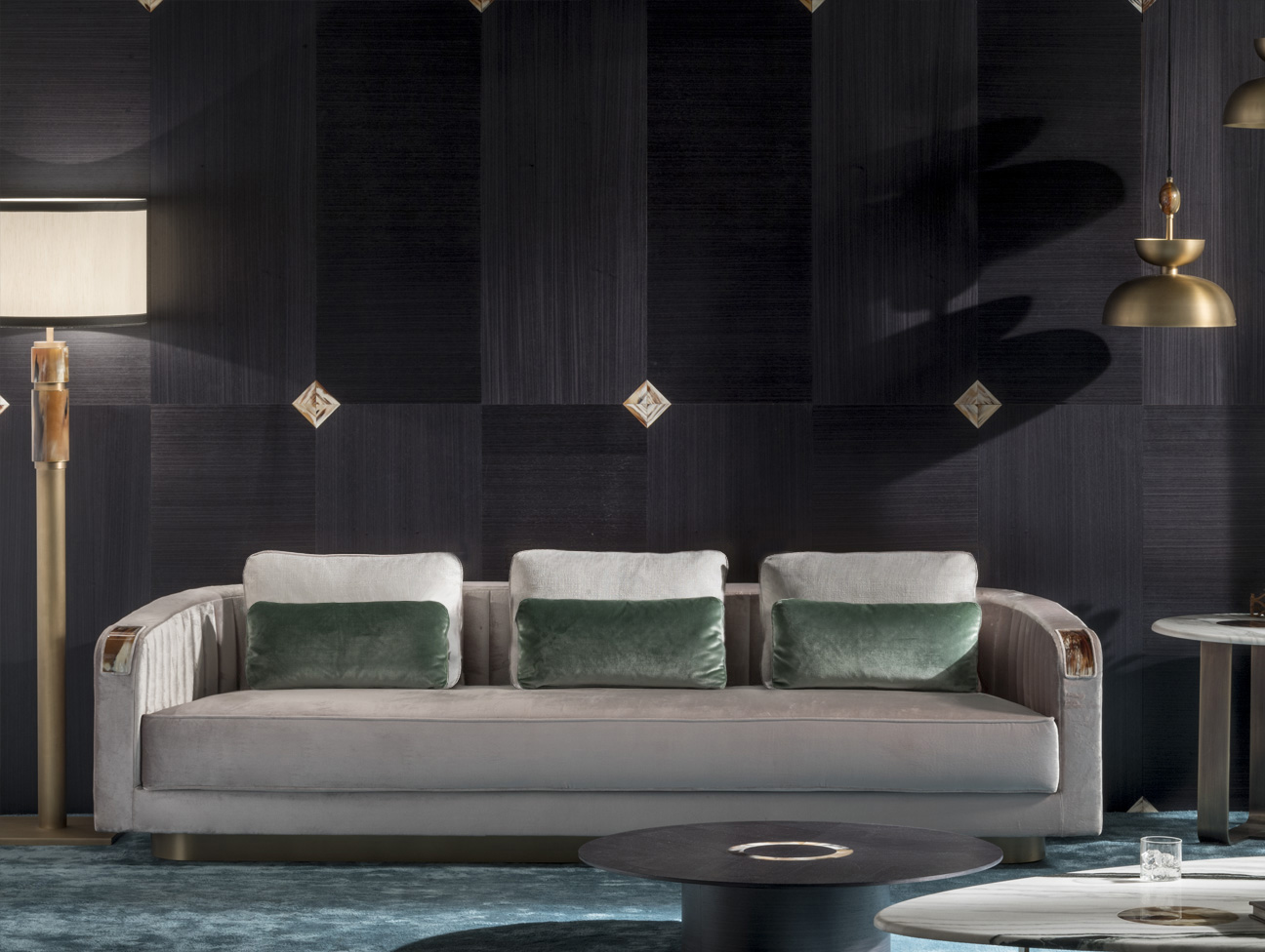 С мягкими, изящными изгибами, диван Rea на три места олицетворяет непревзойденный комфорт и элегантность. Особый шарм дивану придают стеганые части с изысканным рельефным узором, подчёркивающим плавность его линий.