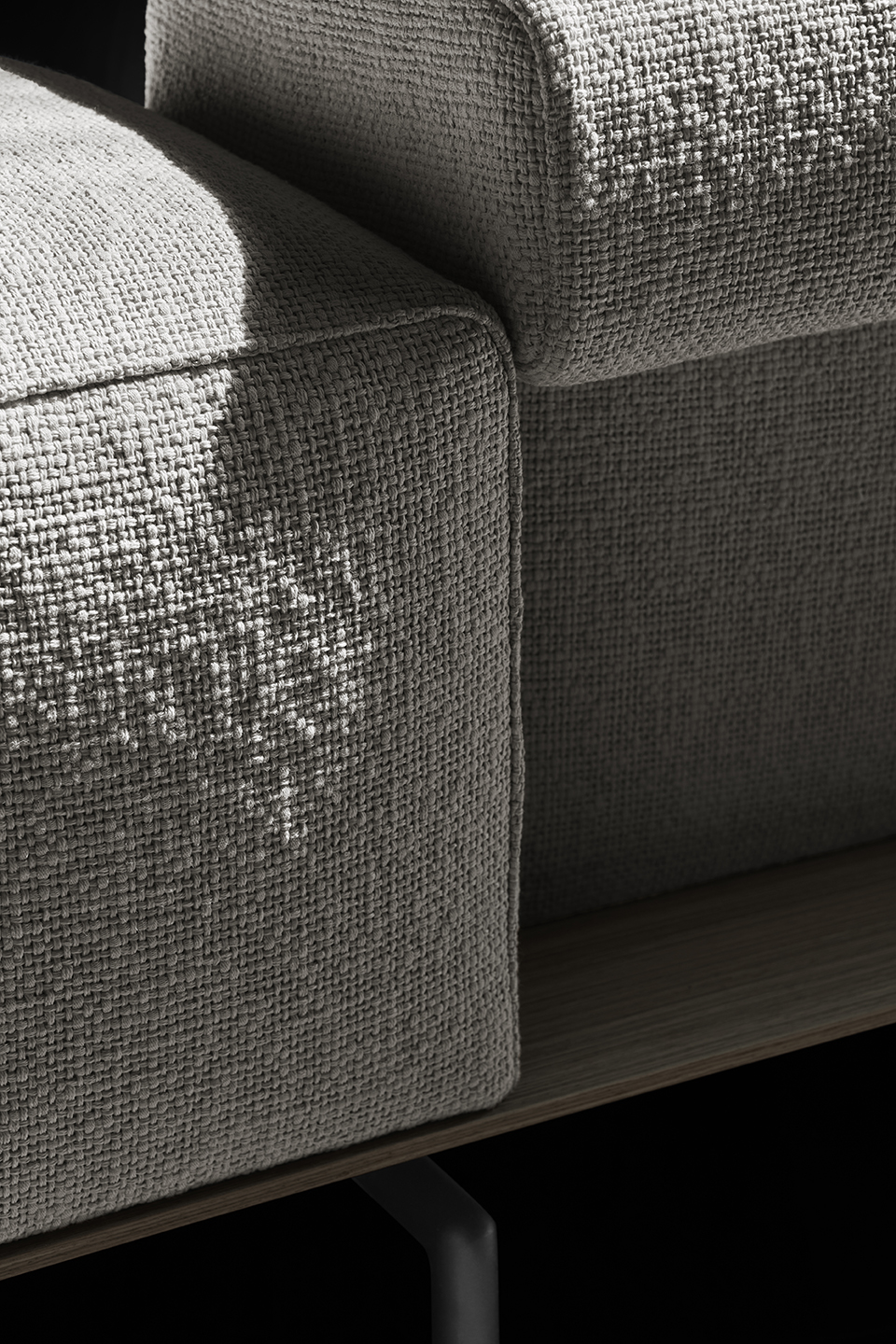 Каркас из стали. Основа из дерева в шпоне Canaletto walnut. Подушки сиденья и спинки наполнены пенополиуретаном и гусиным пухом.Обивка – ткань. Металлические ножки gunmetal grey..