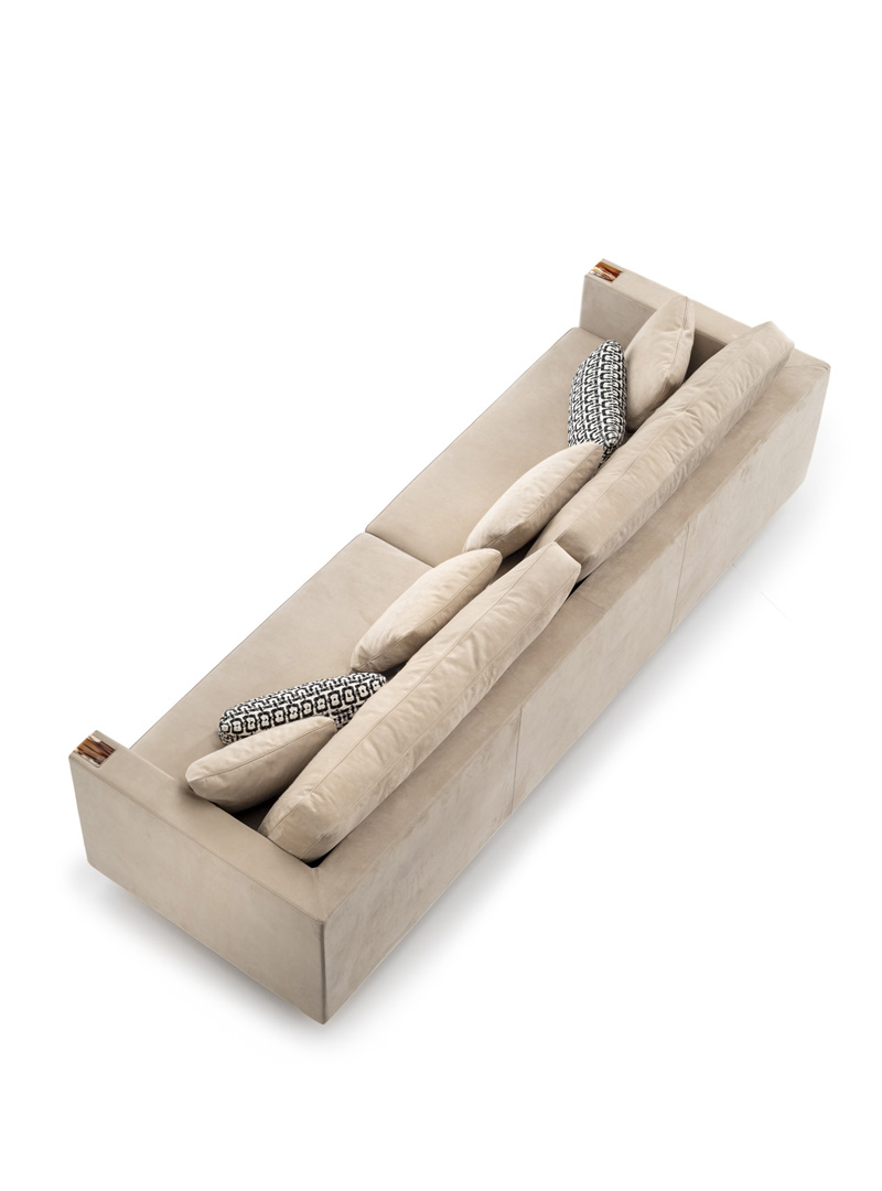Олицетворяя вневременную элегантность и комфорт, диван Zeus на четыре места сочетает ценные материалы и безупречное исполнение. Диван привлекает внимание уникальными L-образными подлокотниками из полированного рога — результатом современного мастерства и традиционных ремесленных техник.