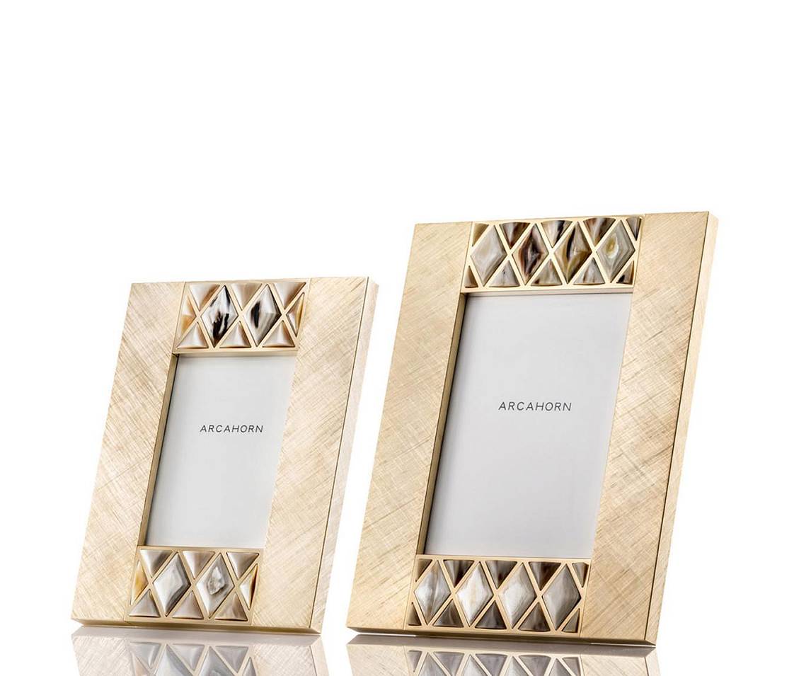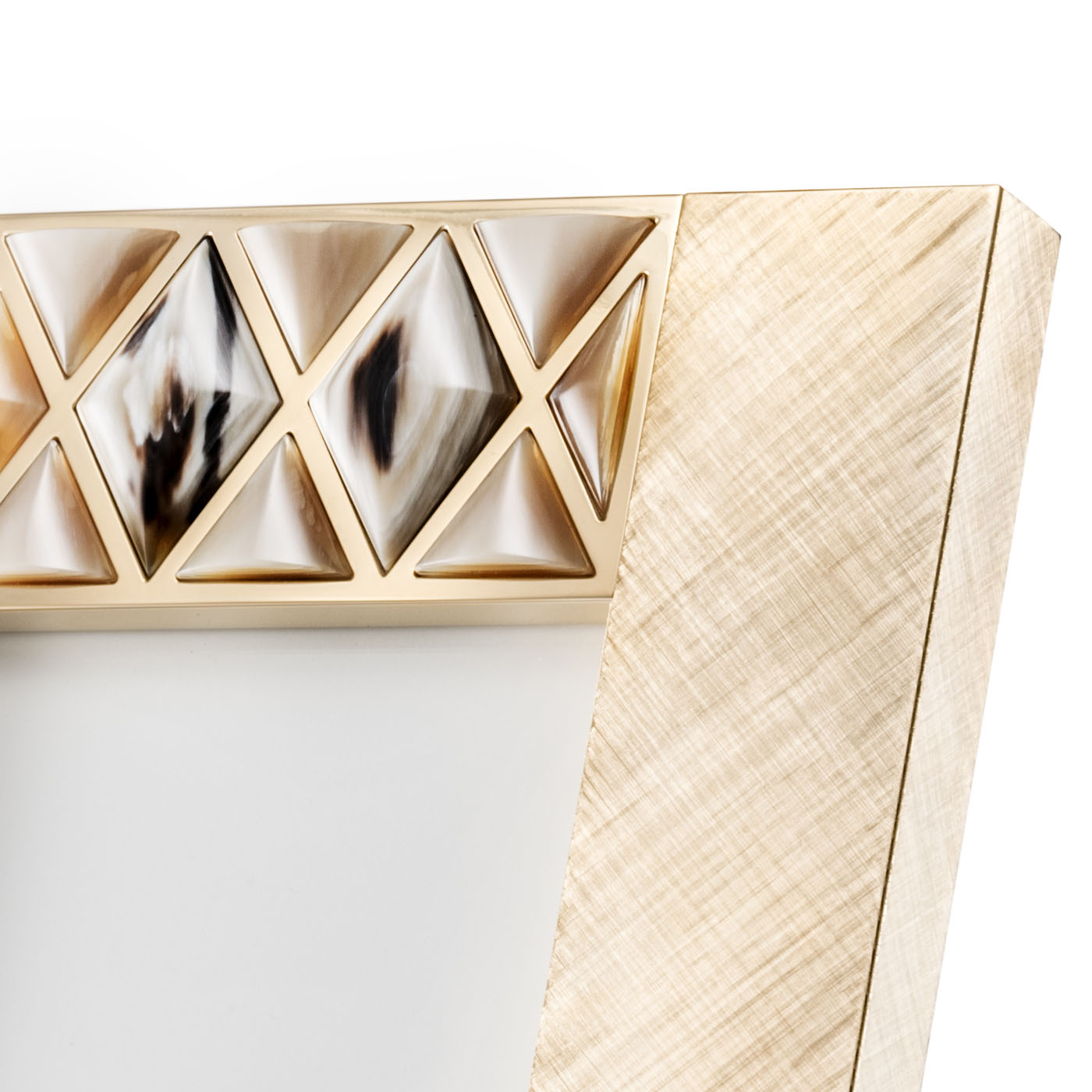 Подобно изысканному ювелирному украшению, фоторамка Dalila привлекает внимание ослепительной красотой вставок из натурального рога.