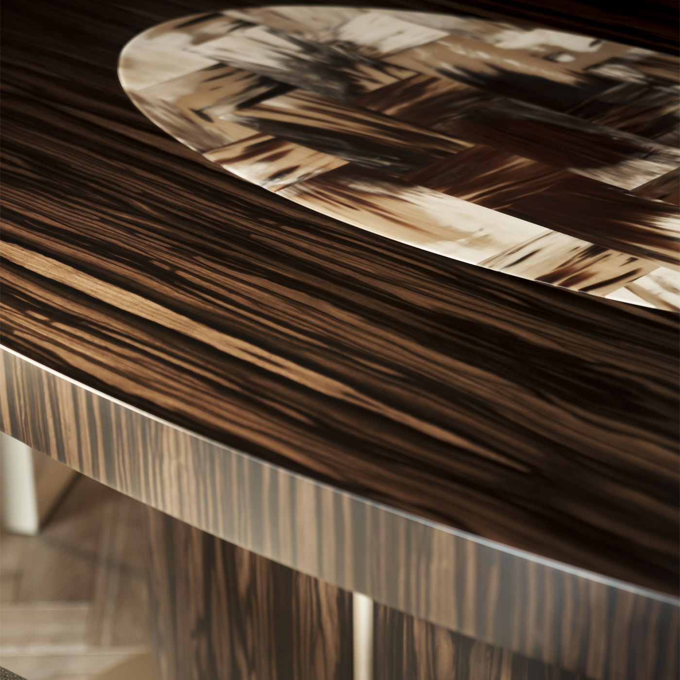Мы используем только рог зебу Bos Taurus, добываемый с учётом этических норм. Этот материал проходит сложную обработку, требующую мастерства и времени: сначала его отбирают, затем подвергают термообработке, полируют и соединяют вручную, раскрывая естественную красоту текстуры.