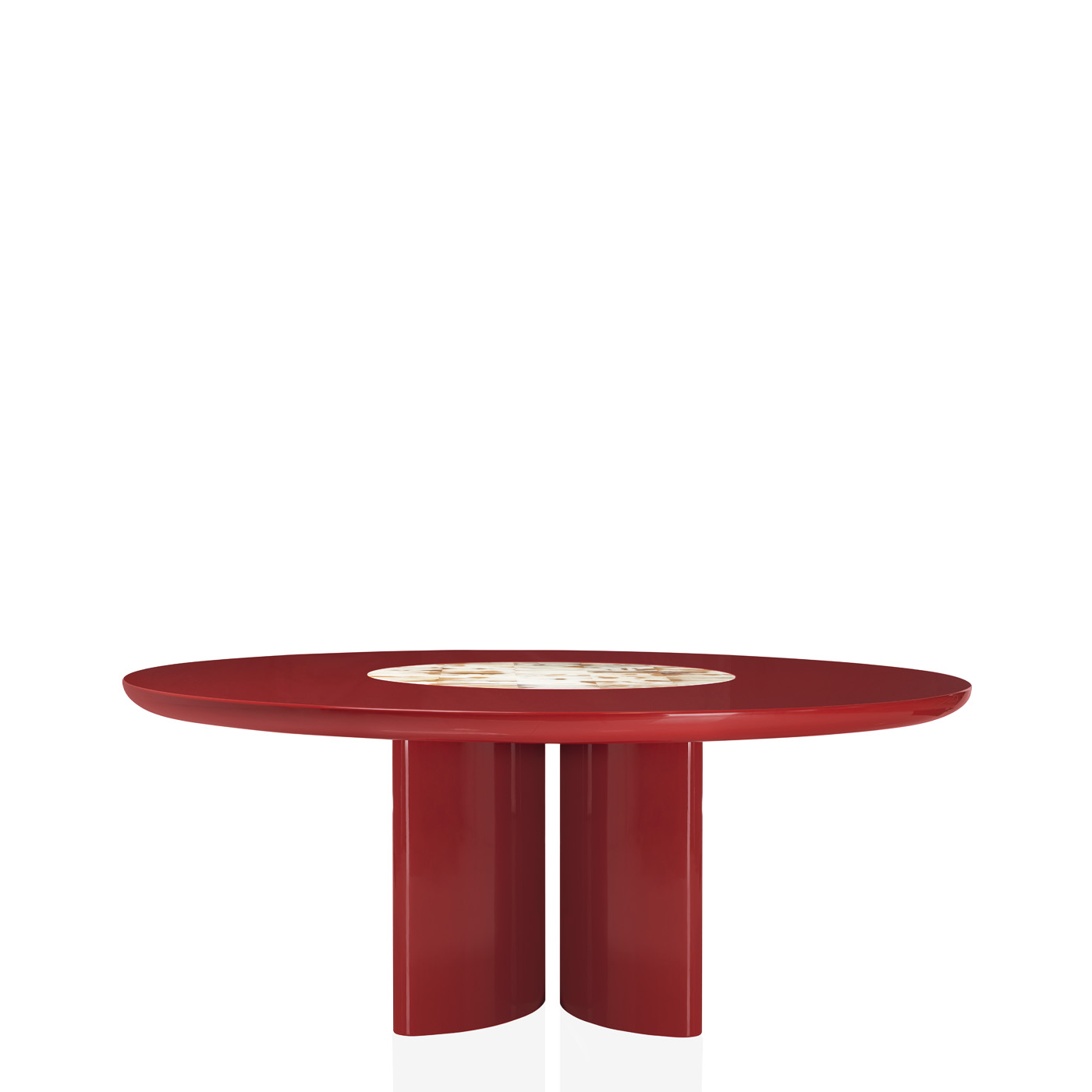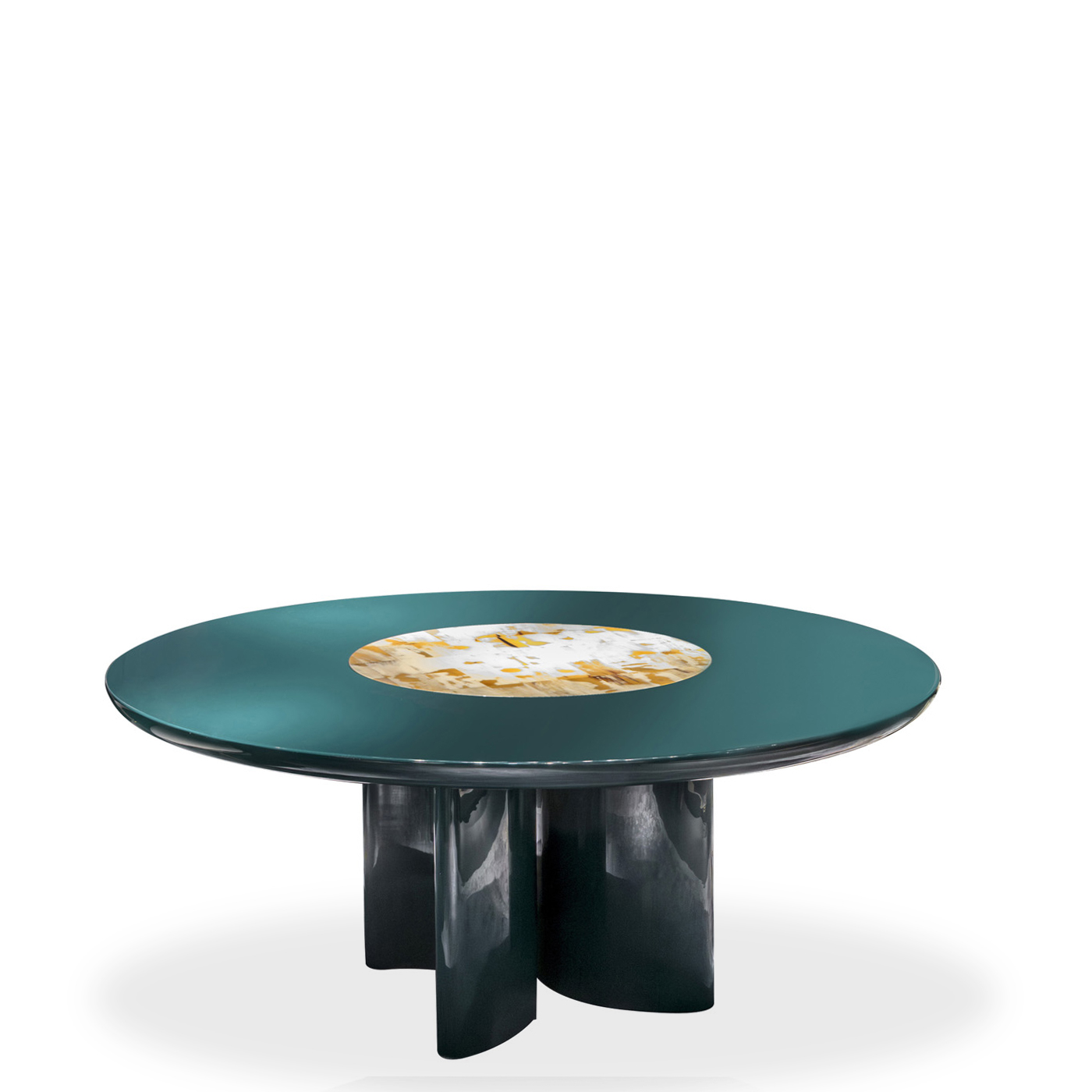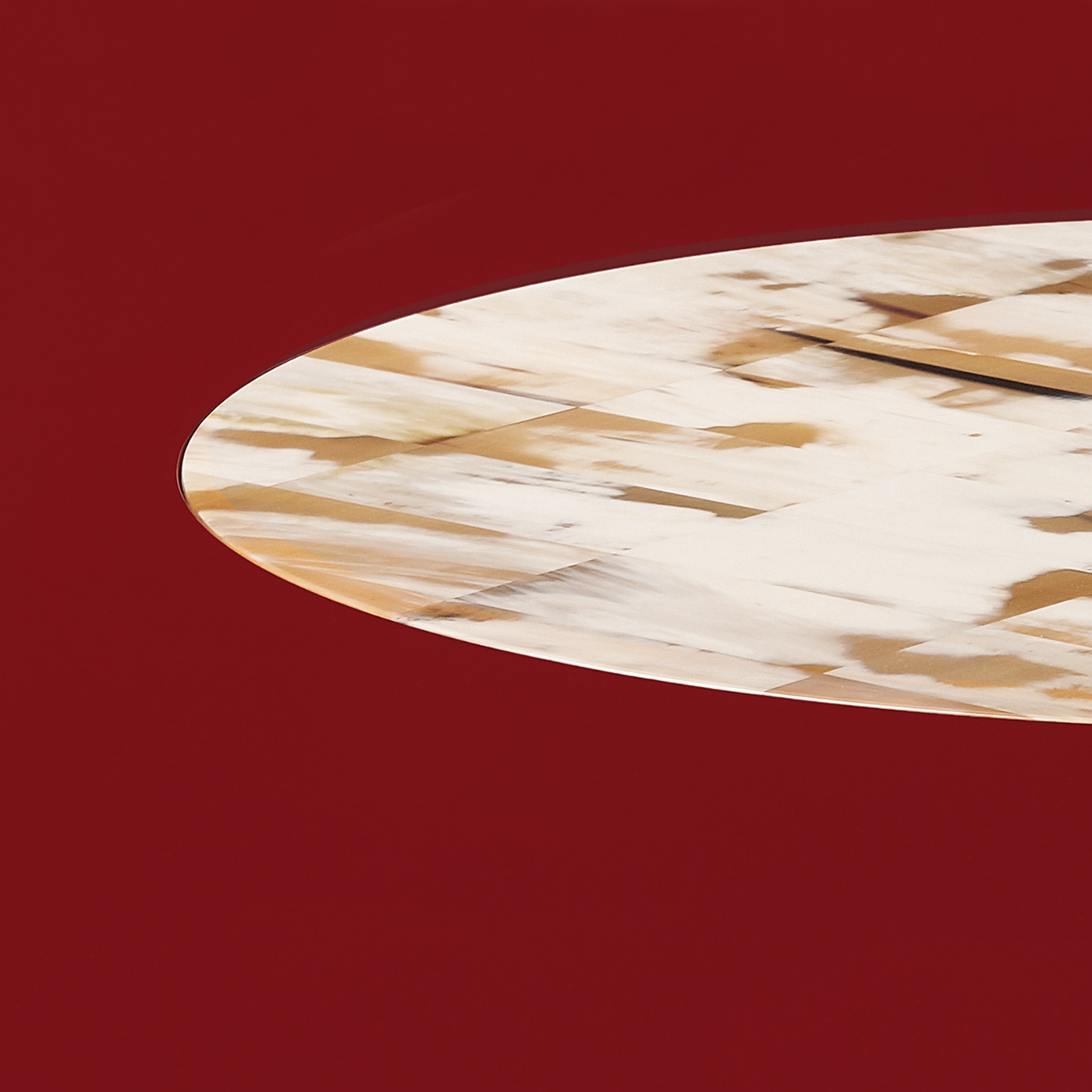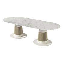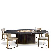 Обеденный стол Tecla выделяется своей выразительной эстетикой и использованием материалов, обладающих непреходящим очарованием. Круглая столешница украшена центральной инкрустацией из рога, который тщательно отбирается и формируется в плитки, создавая уникальную игру оттенков и придавая столу эксклюзивный характер. Стол опирается на скульптурное основание, обеспечивающее устойчивость и надёжность, при этом придавая дизайну изящные линии.