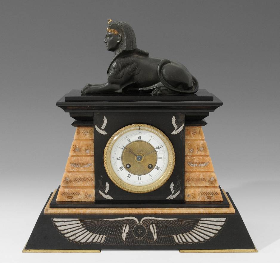 Часы являются оригинальным и редким образцом дорогой, заказной, представительской парадной интерьерной бронзы работы парижских бронзовщиков. На эксклюзивный характер предмета указывают размеры часов, сложное композиционное решение художественного оформления, требующее предварительного авторского рисунка – эскиза, использование различных материалов, применение чеканки.