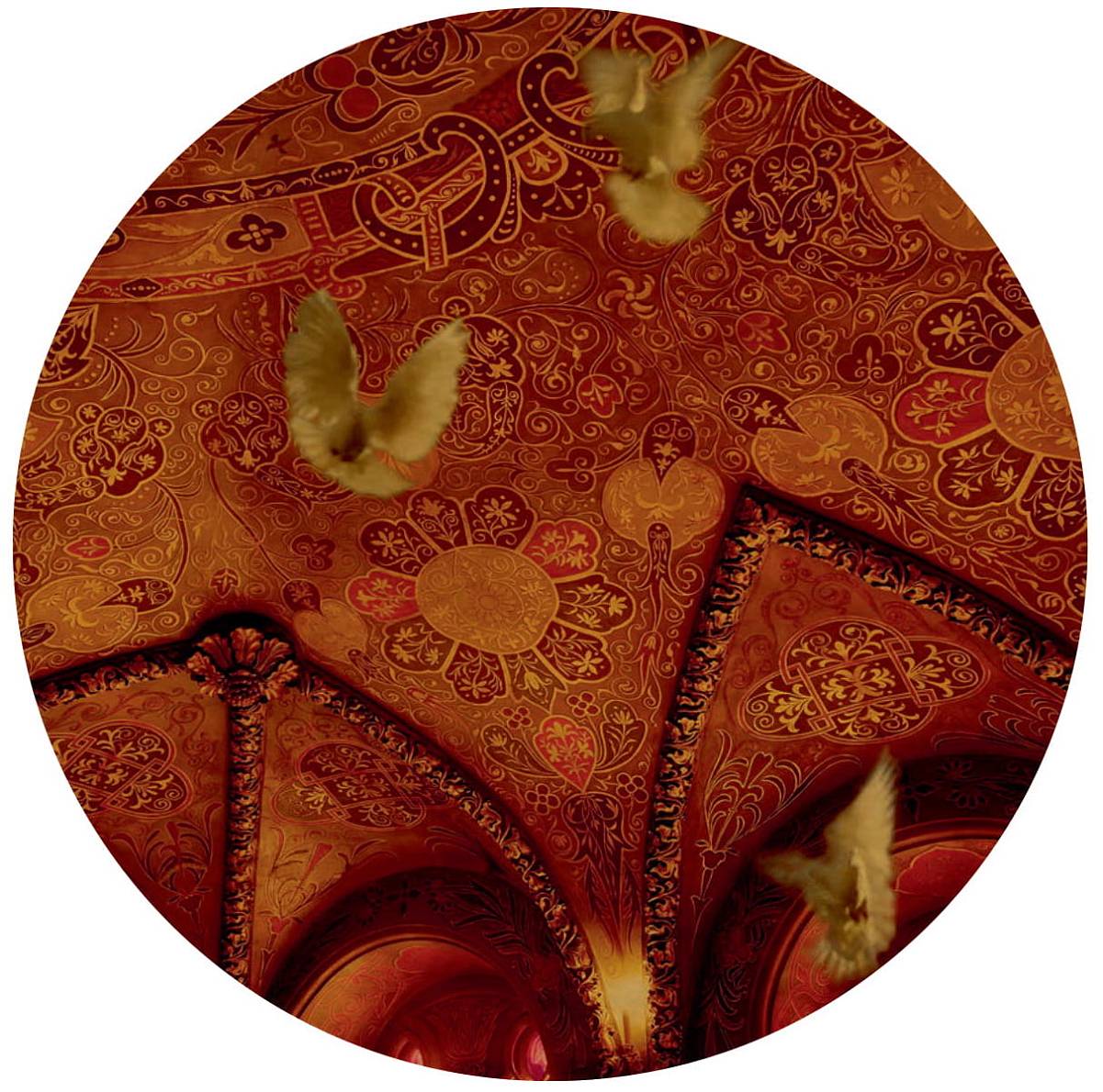 Клавихо-Телепнев В. Из серии "Кремль" Проект «Кремль» посвящен новому взгляду на пространство Московского Кремля. Автора проекта вдохновила романтическая история любви царицы Елены Глинской (XVI в.) и конюшего, боярина, воеводы Ивана Федоровича Овчины Телепнева-Оболенского, продлившейся всего четыре года и во многом изменившей историю страны. Материал: Печать на дереве Размер: в раме диаметр 80 см