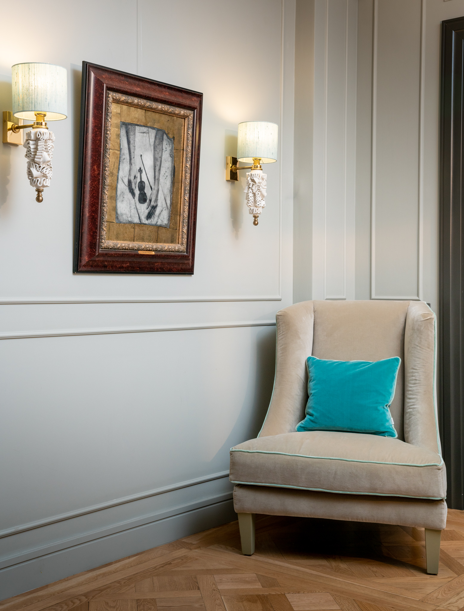Клавихо-Телепнев В. Из серии "Руки" Идея серии «Руки» родилась, когда автор работал над темой «Чувственность», разрабатывая концепцию портрета через изображение женской спины. В качестве важных деталей там присутствовали изящные линии женских рук. Так возникла мысль создать самостоятельную серию, где портрет человека возникал бы через изображение его рук. Материал: Фотопечать, эгломизе Размер: в раме 80х70 см