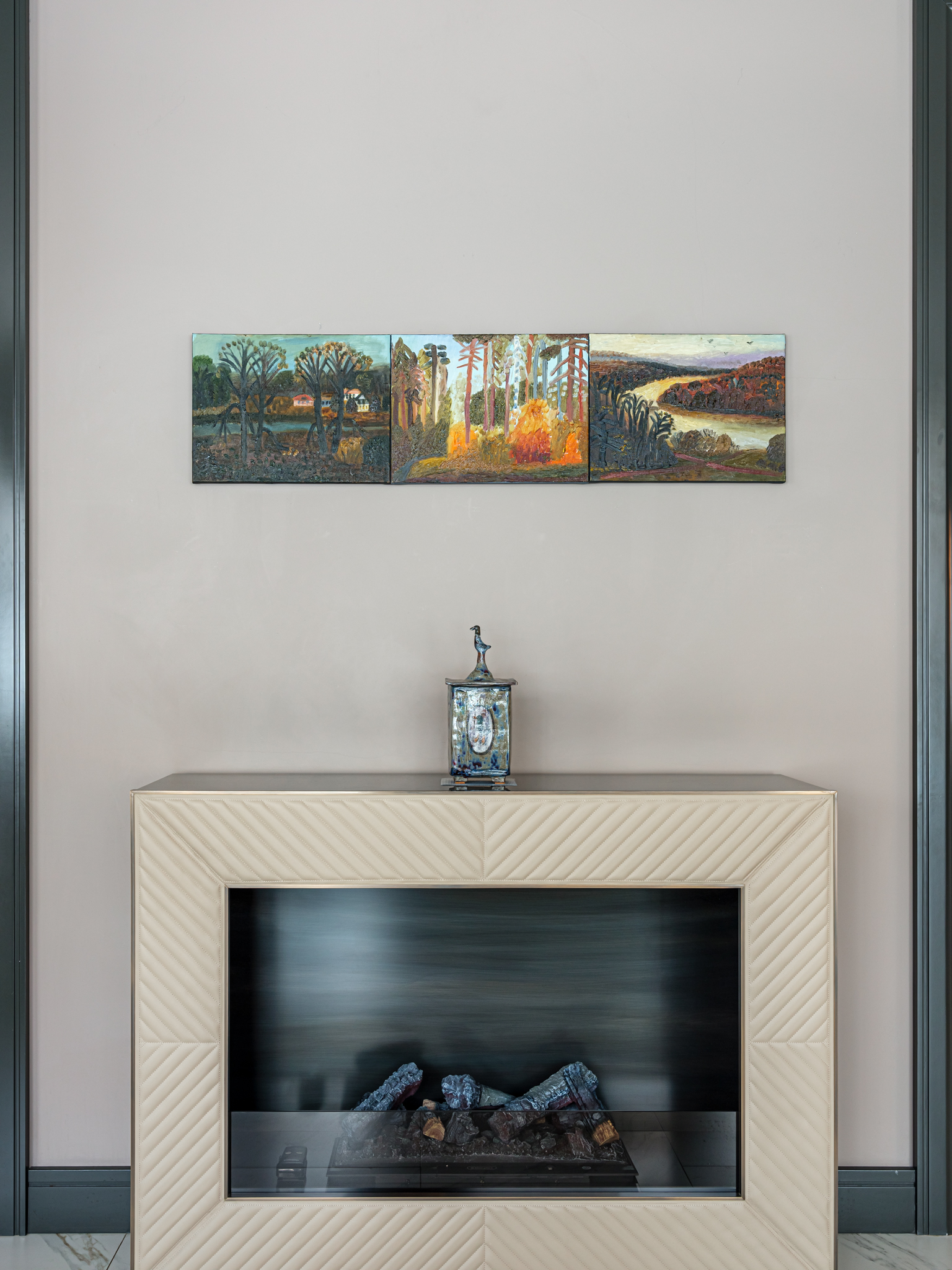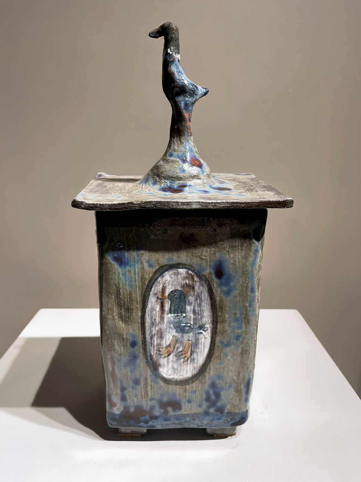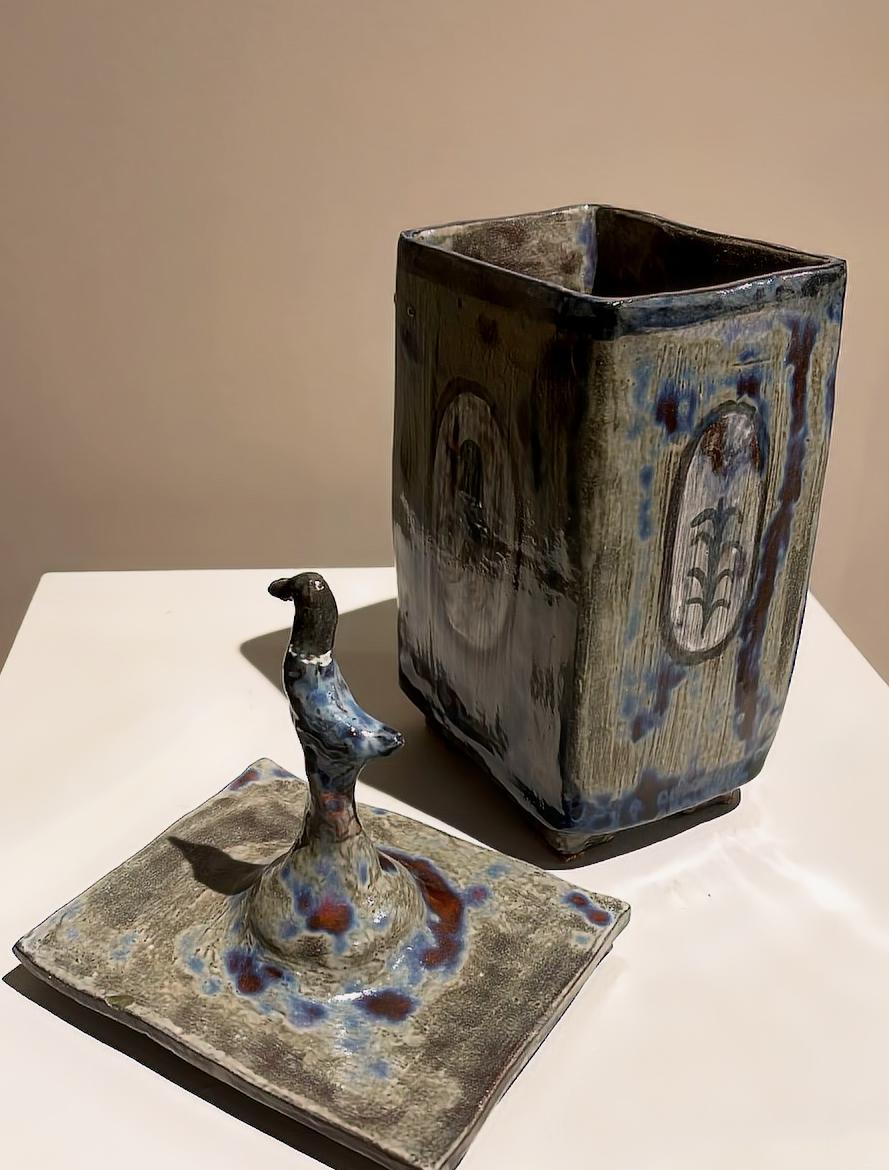 Работает в живописи и керамике.