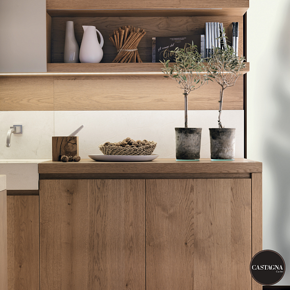 Главное направление производства фабрики Castagna Cucine - это изготовление высококачественных кухонных гарнитуров в двух стилистических решениях - классическом и в стиле модерн. Они всегда выполнены в лучших итальянских традициях с использованием новейших технологий. Возникнув в 1958 году как маленькая ремесленная мастерская, производство под руководством Франческо Кастанья быстро перешло в разряд фабричного и завоевало широкое признание. Сегодня это фабрика с площадью более 6 000 квадратных метров. Центральное место в процессе изготовления мебели здесь занимает выбор материала: предпочтение отдается уникальным и ценным породам древесины, таким, например, как итальянский орех и дуб. Разработкой новых проектов на фабрике Castagna Cucine занимаются наследницы известного рода мастеров - краснодеревщиков - сёстры Альгида и Франческа Кастанья. Именно они после длительного сотрудничества с Марией Бьясиоло, главным дизайнером фабрики, представили миру уникальную комбинацию практичности и функциональности в кухне, предназначенной именно для женщины.