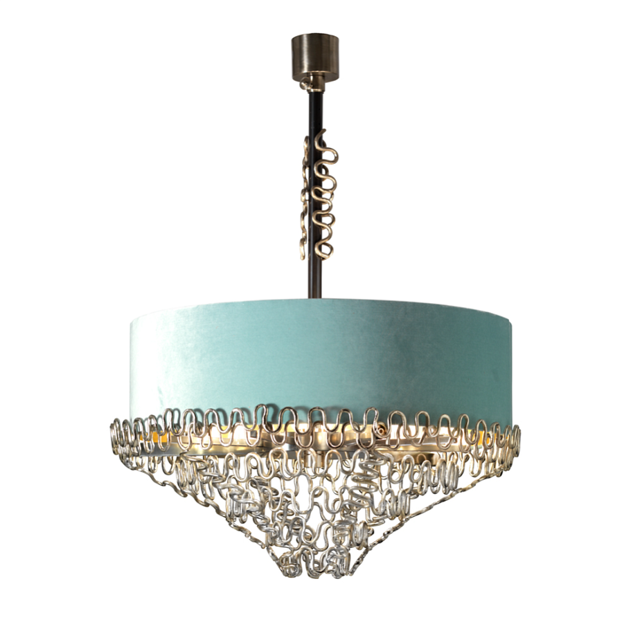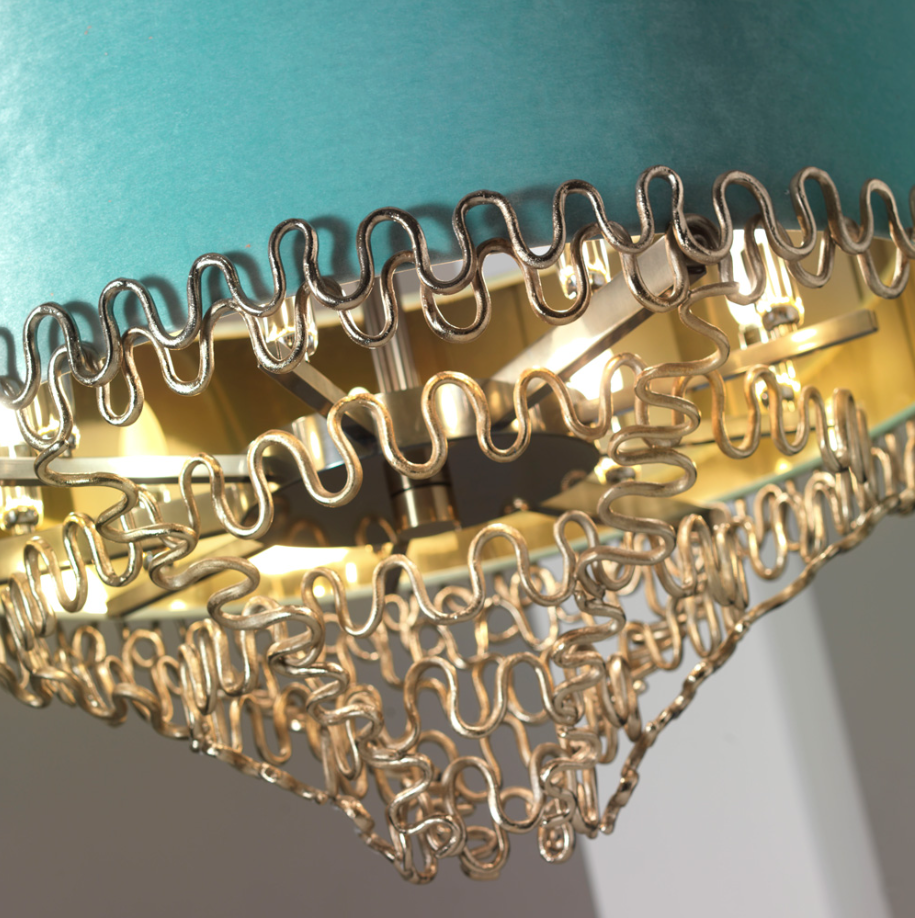 Латунь, бронзовое литье. Абажур из шелкового бархата.