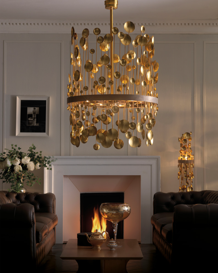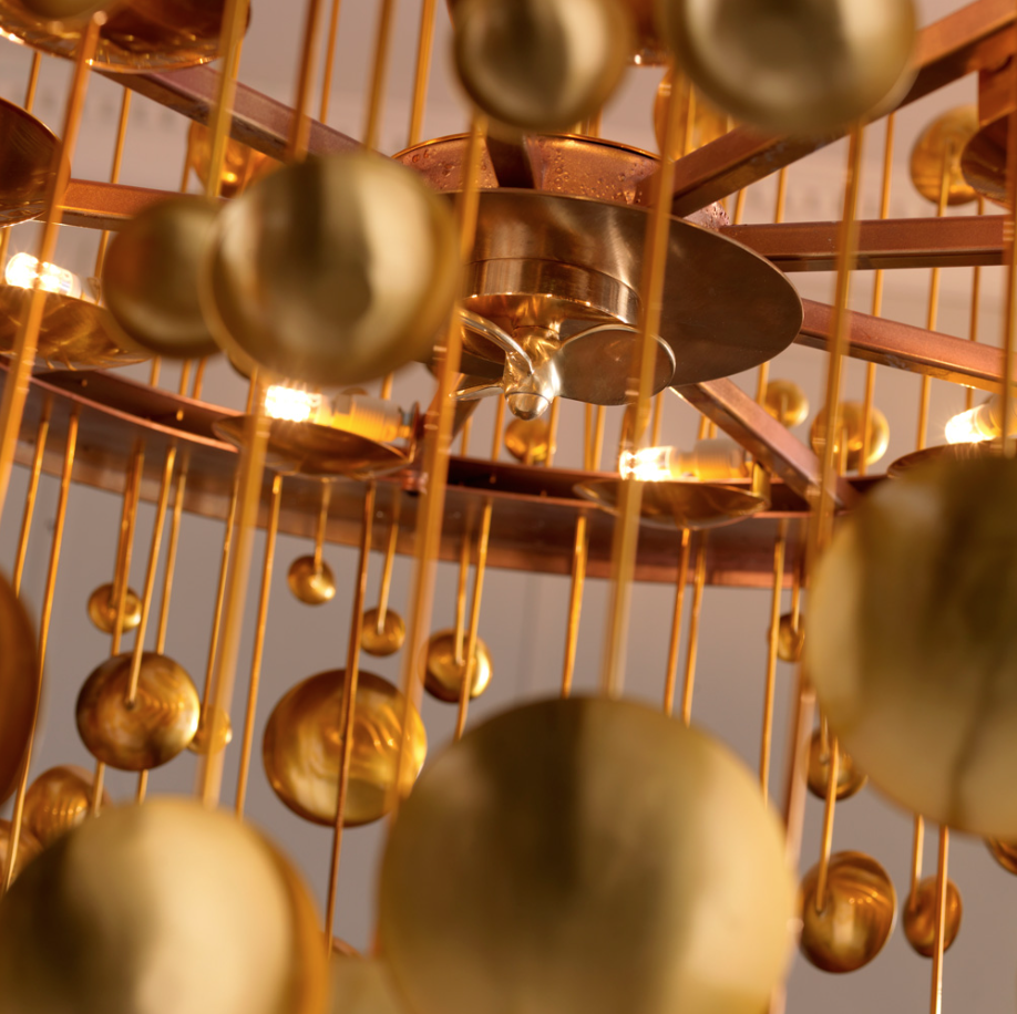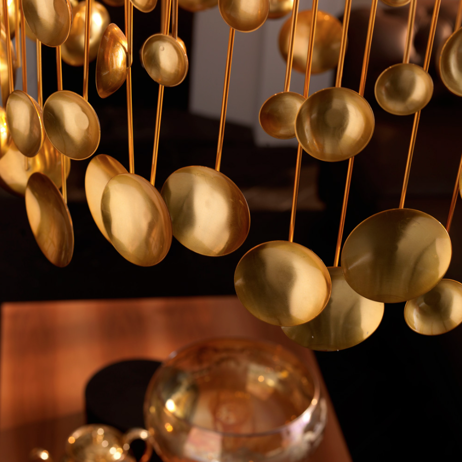 Люстра из полированной латуни. Латунные подвески.