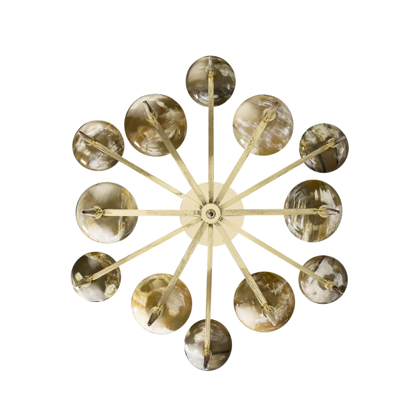 Каждый элемент уникален, благодаря природным, неповторимым оттенкам рога. При включении света он раскрывает игру мягких бликов и теней, наполняя пространство утончённым сиянием.