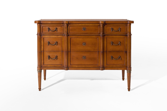 Комод Luigi XVI, 3 ящика с замком, деревянная столешница.Изготовлены из древесины вишни,патинированная латунь.Возможны другие варианты отделки. ОТДЕЛКА K1 (W), латунь patinated brass