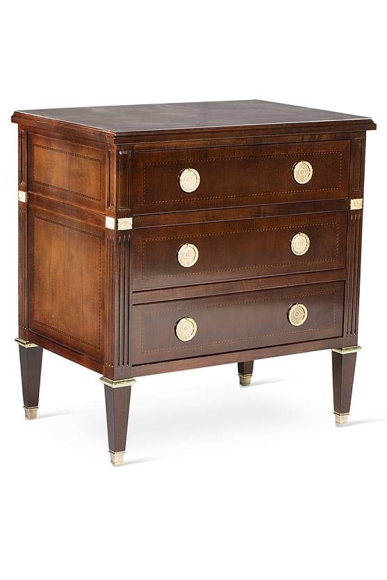 Комод Людовик XVI, 6 ящиков, мраморная столешница см. 2. Доступен также с деревянной столешницей. ОТДЕЛКА дерево вишни и груши с инкрустациями, золотая латунь.