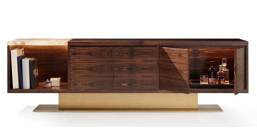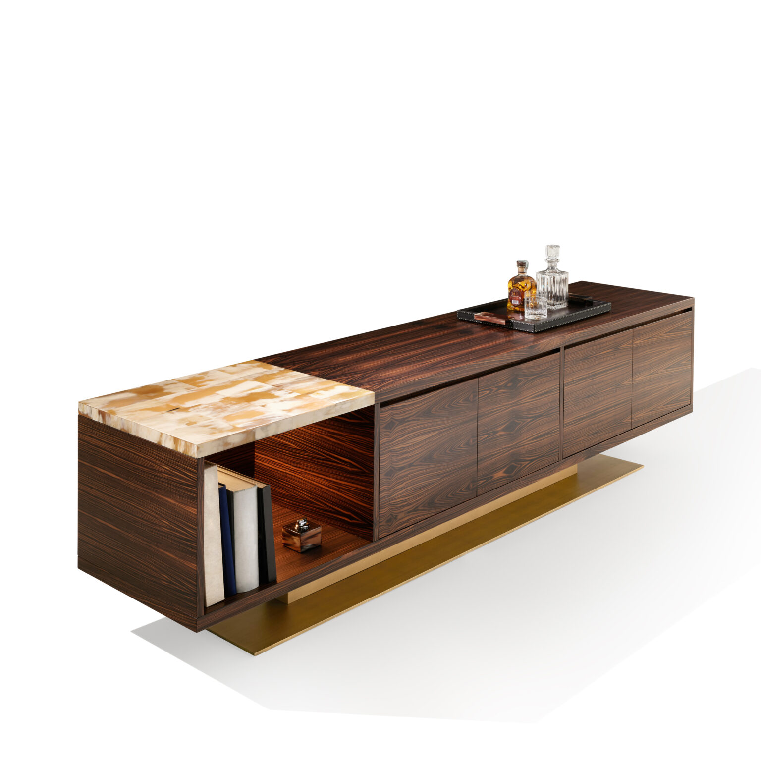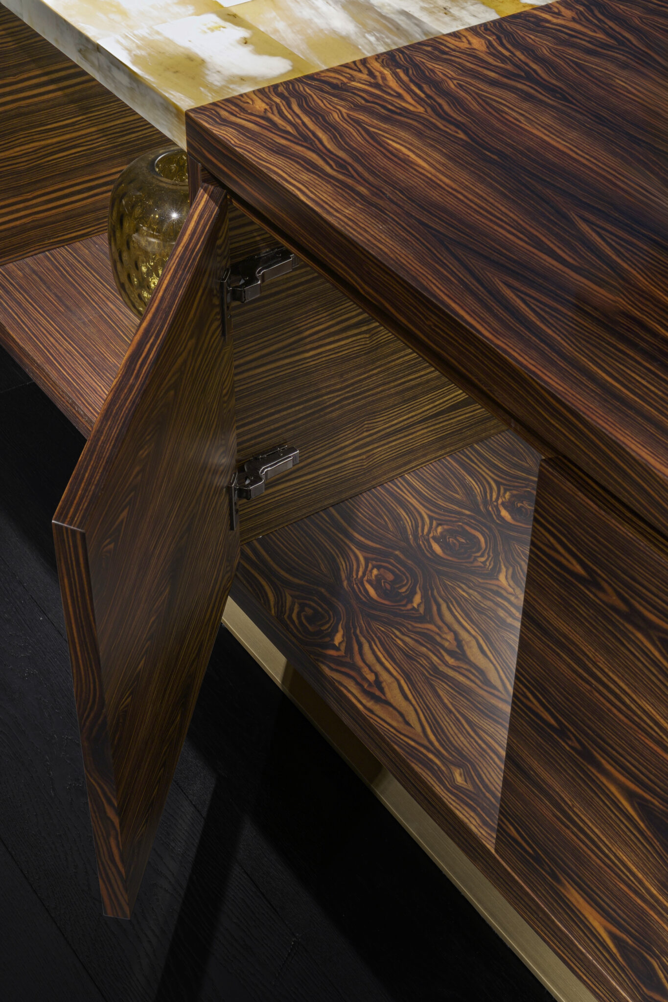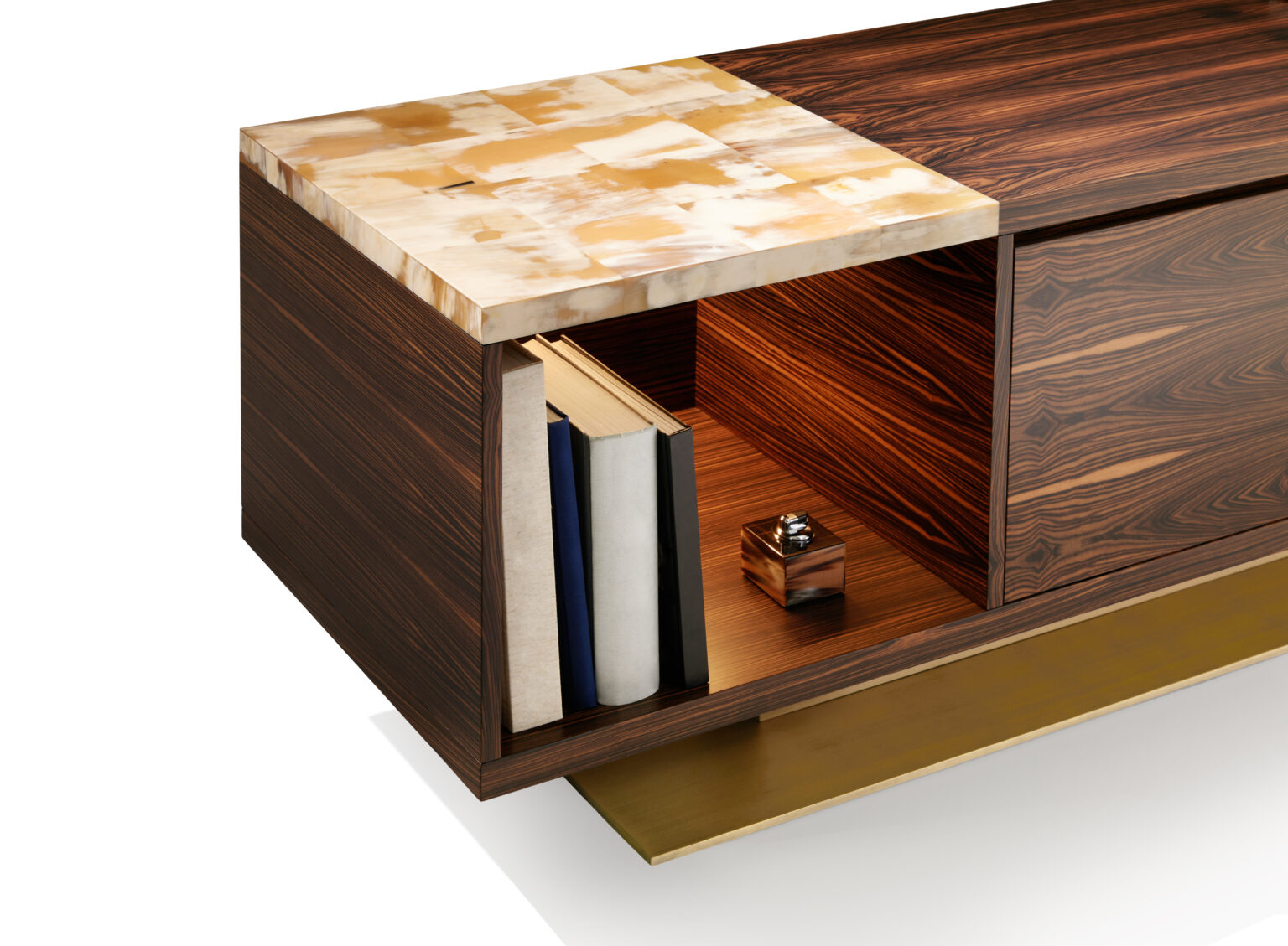 Borromeo — это эффектный комод, в котором современный дизайн гармонично сочетается с мастерством традиционных ремесленников. Искусно выполненный из дерева Макассар, этот изысканный материал излучает вечную элегантность. Элегантная вставка из рога придает особый шарм, создавая выразительный контраст между естественными оттенками рога и теплыми прожилками древесины. Это уникальное сочетание подчеркивается матовой отделкой, придавая комоду еще больше утонченности и изысканности.