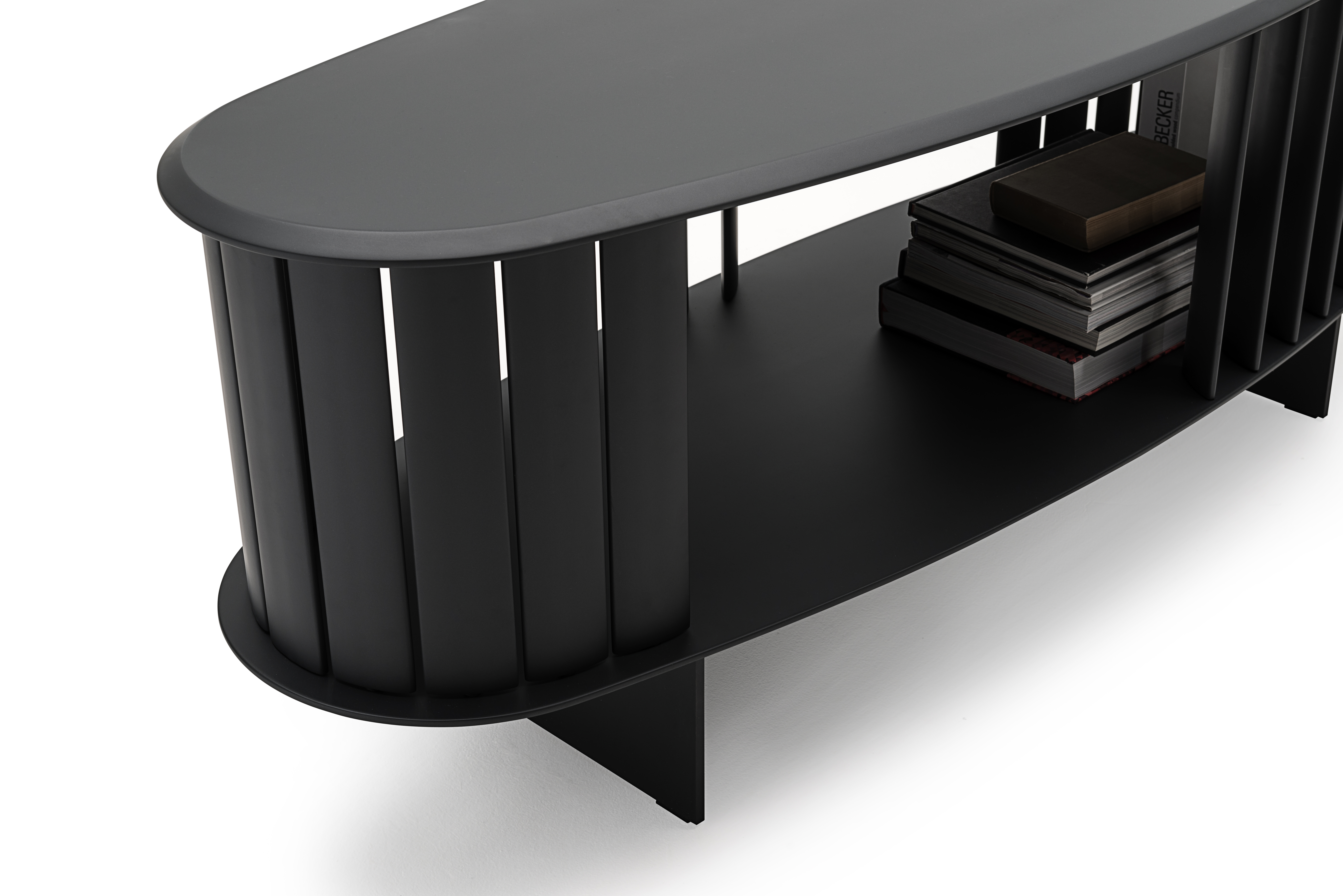 Islands — это коллекция отдельно стоящих комодов доступ к которым возможен с разных сторон благодаря обрамлению из деревянных планок, кажущихся расположенными хаотично. Однако благодаря центральной оси они могут вращаться вокруг своей оси, превращая изделие то в цельный объём, то в лёгкую, воздушную конструкцию. Многогранное прочтение одного и того же предмета, в котором всегда ощущается тонкая ремесленная работа.