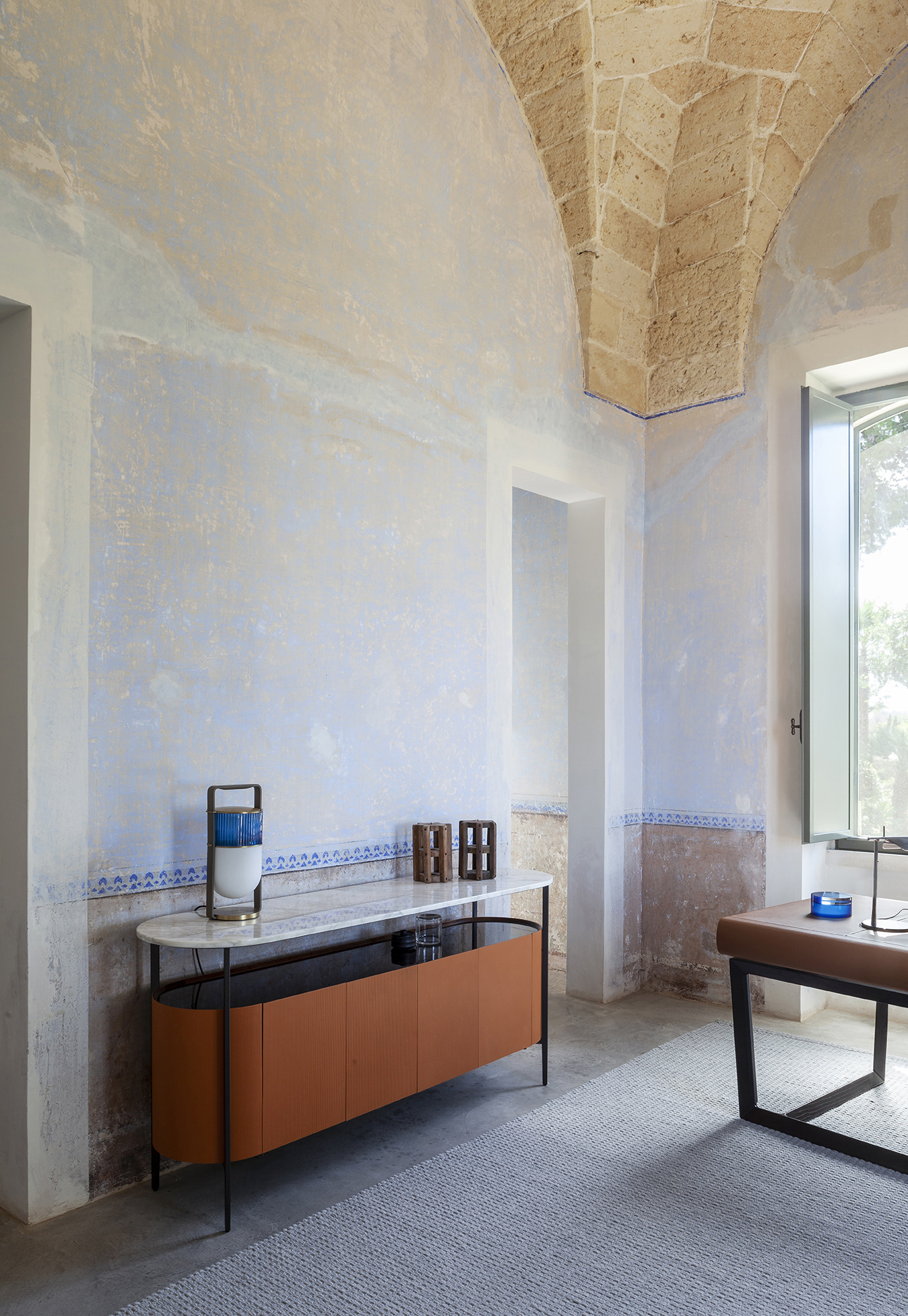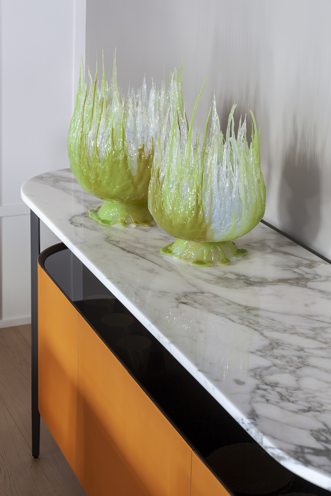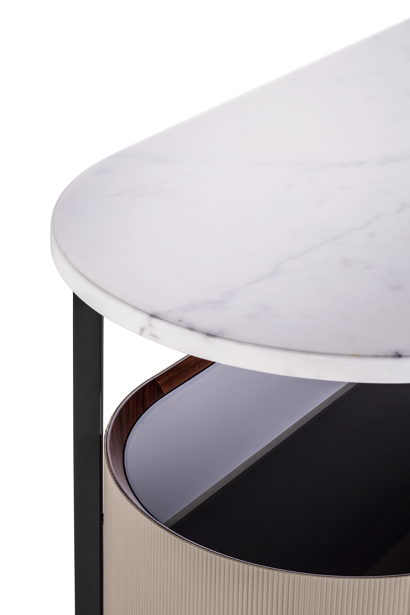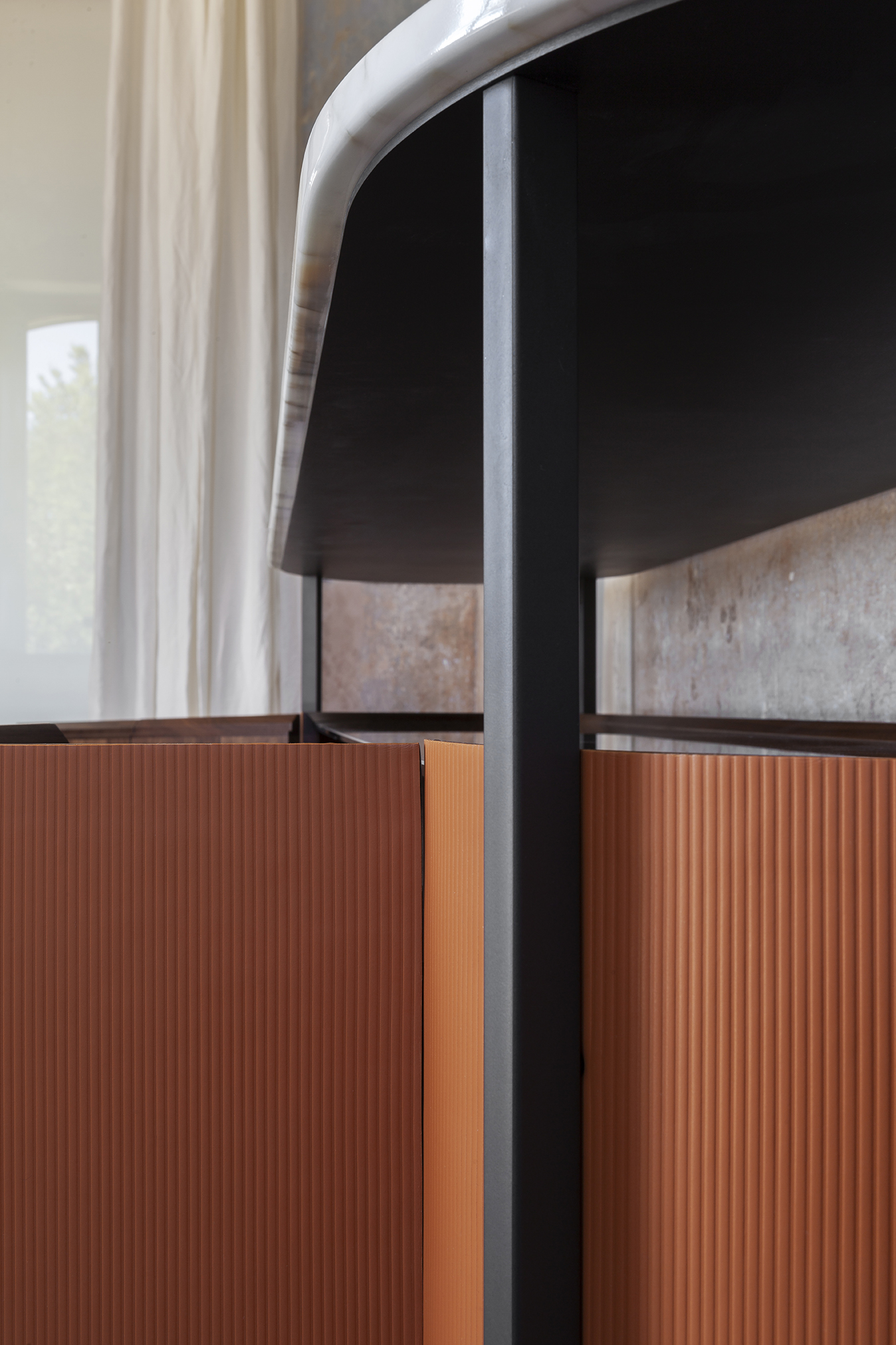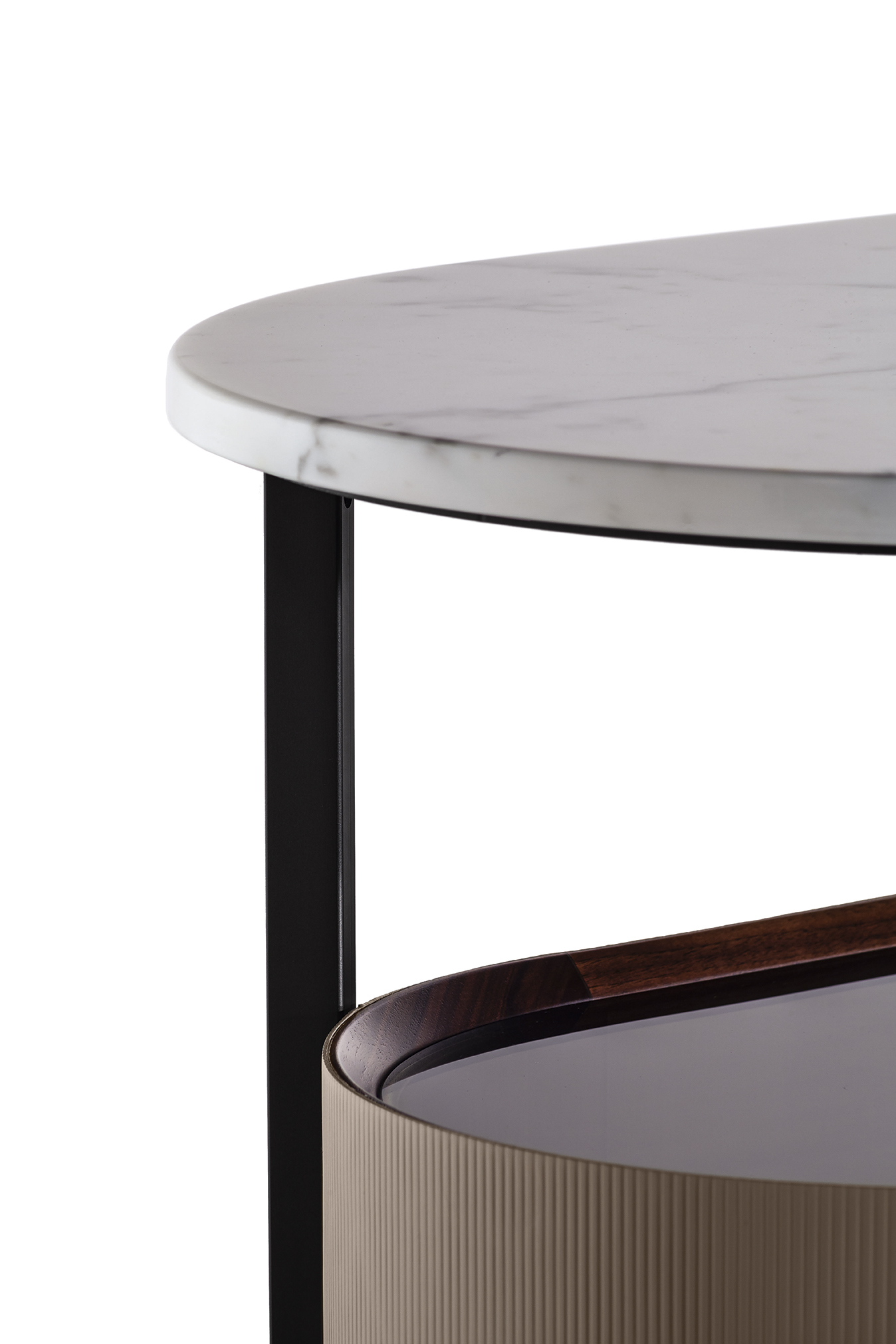 Кожа Saddle extra цвет Polvere, Столешница мрамор Calacatta Semilucido