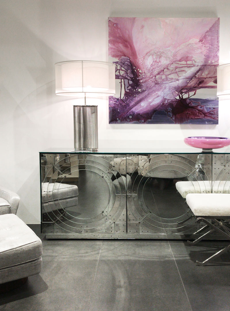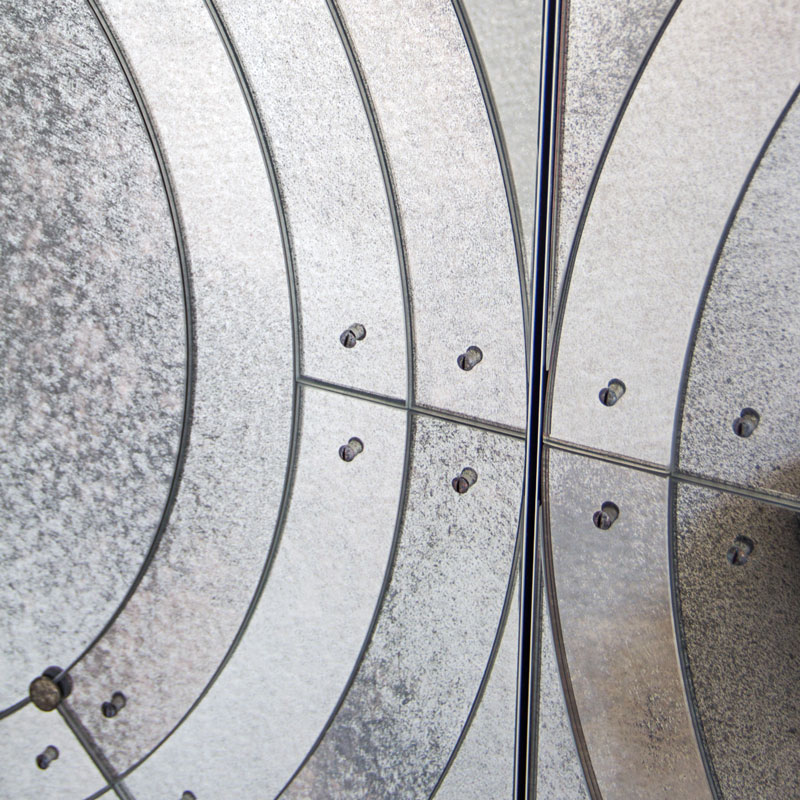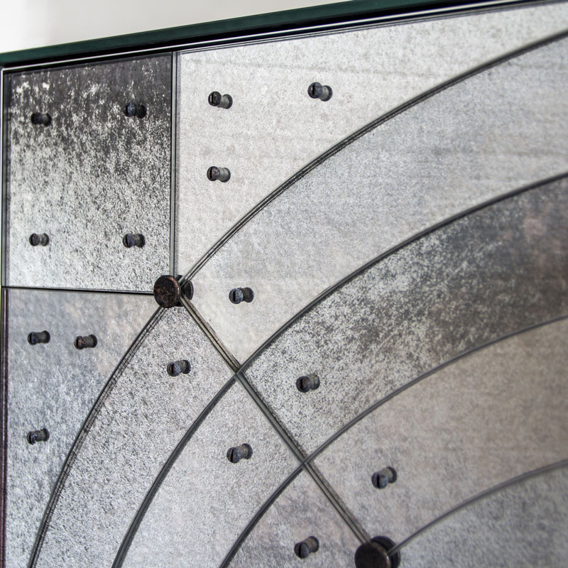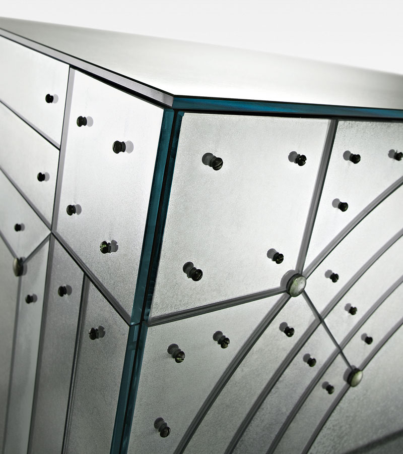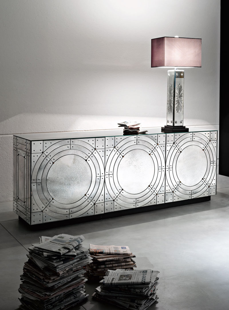 Трёхдверный комод из фацетированного стекла с зеркальной отделкой под старину.