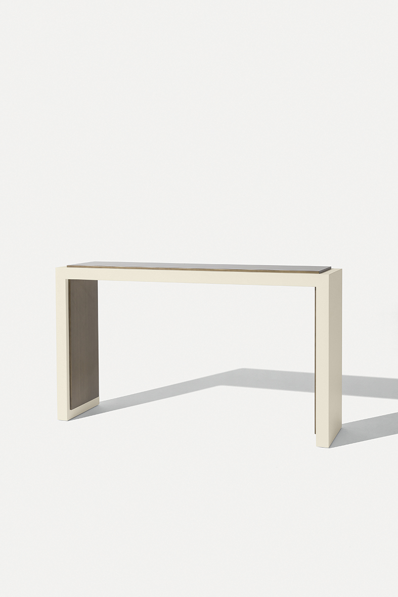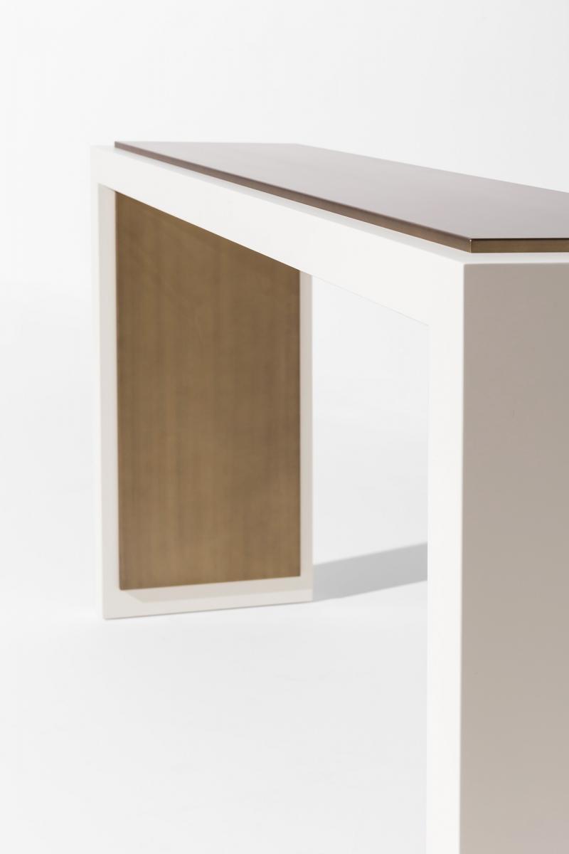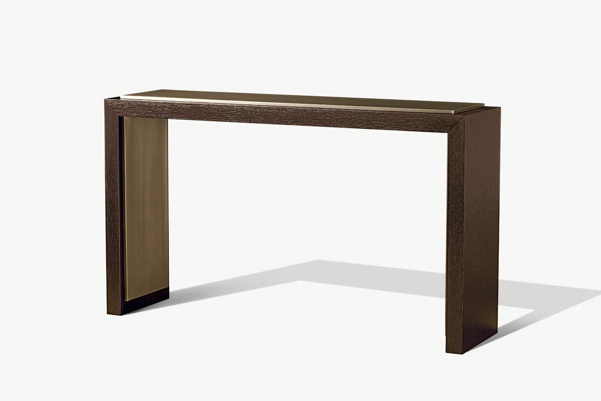 Металлические элементы представлены в бронзовом варианте, а их сатинирование выполнено вручную.
