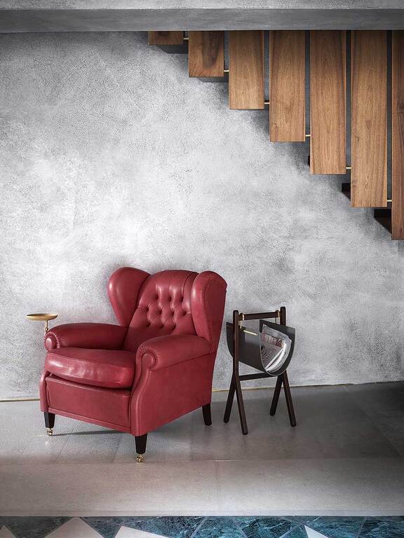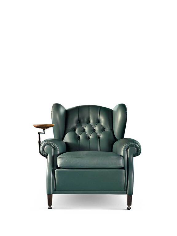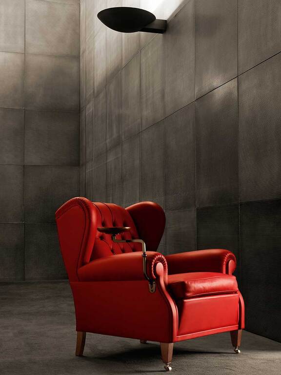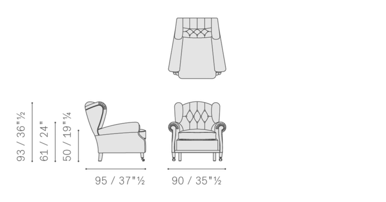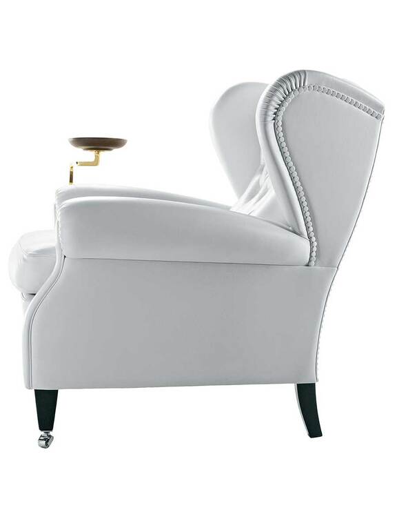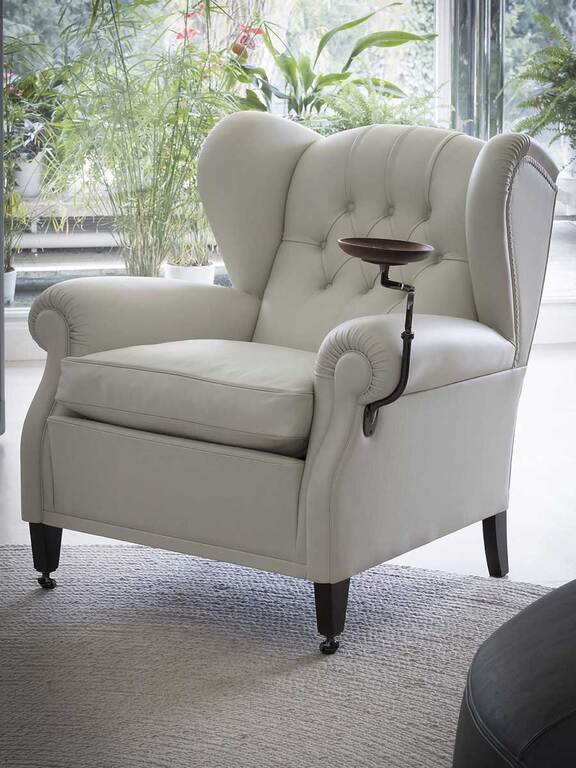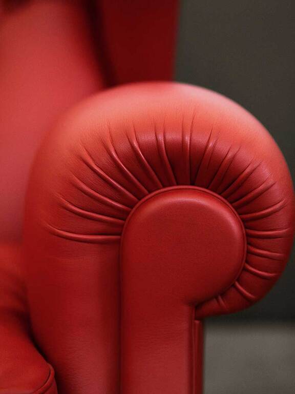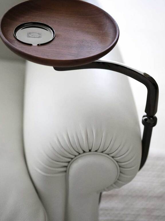 Сиденье набито вулканизированным конским волосом, а спинка и подлокотники — вручную сформированным растительным конским волосом. Подушка сиденья наполнена гусиным пухом. Рисунок на спинке создается с помощью ручной техники капитоне.