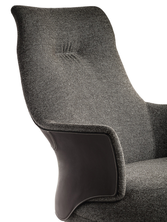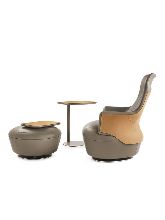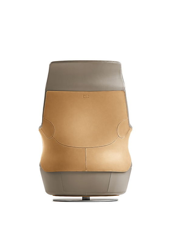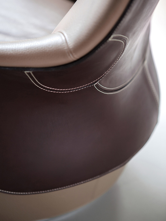 Обивка выполнена из кожи Cuoio Saddle Extra для внешней поверхности и из кожи Pelle Frau® или ткани для внутренней. Края внешней поверхности из седельной кожи украшены изящной видимой контрастной строчкой, подчеркивающей изысканность дизайна.