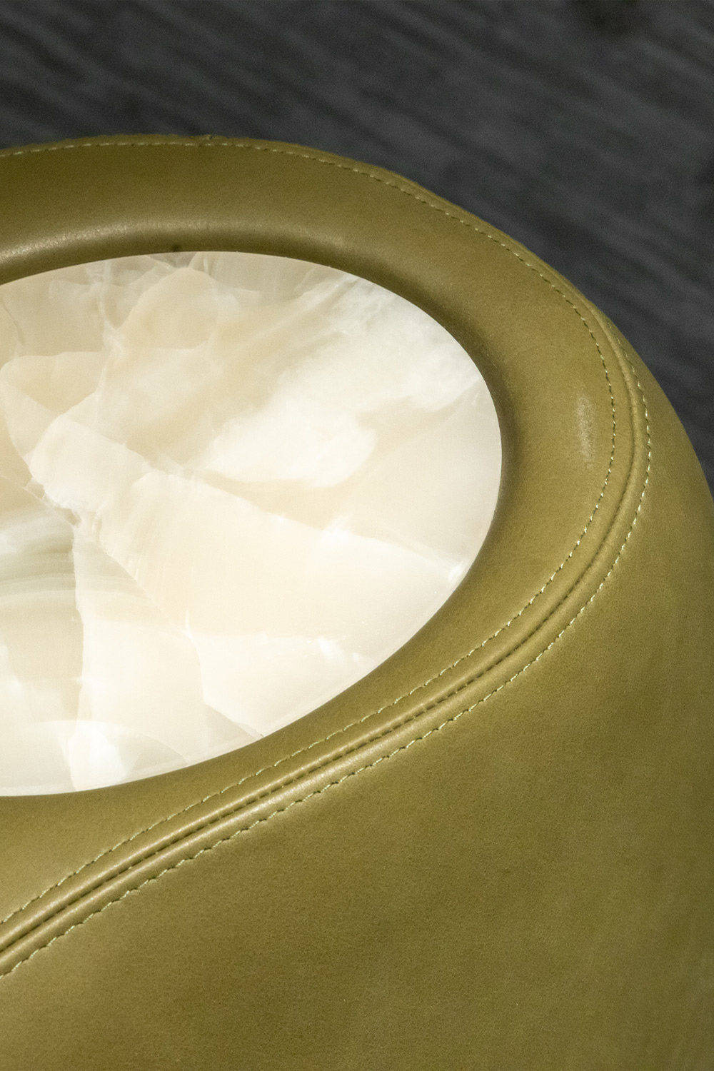 Обивка из ткани или кожи. Вставка из натурального мрамора.