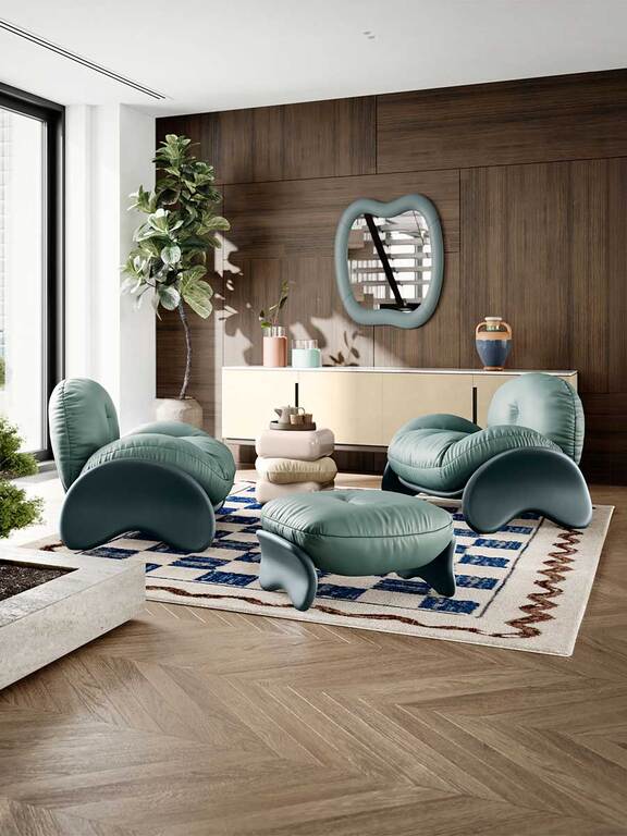 Дизайнер рекомендует использовать для кресла Squash цветовые комбинации в кремовых, шалфейных, синих и коричневых тонах.