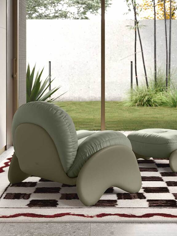 Кресло Squash с его широкими и уютными формами создано на основе жёсткого каркаса из материала polimex®, который поддерживает большие мягкие подушки, обтянутые кожей Pelle Frau® или сочетанием кожи и ткани со съемной обивкой. Каркас и ножки кресла слегка смягчены, что делает их приятными на ощупь, а основание ножек обтянуто кожей.