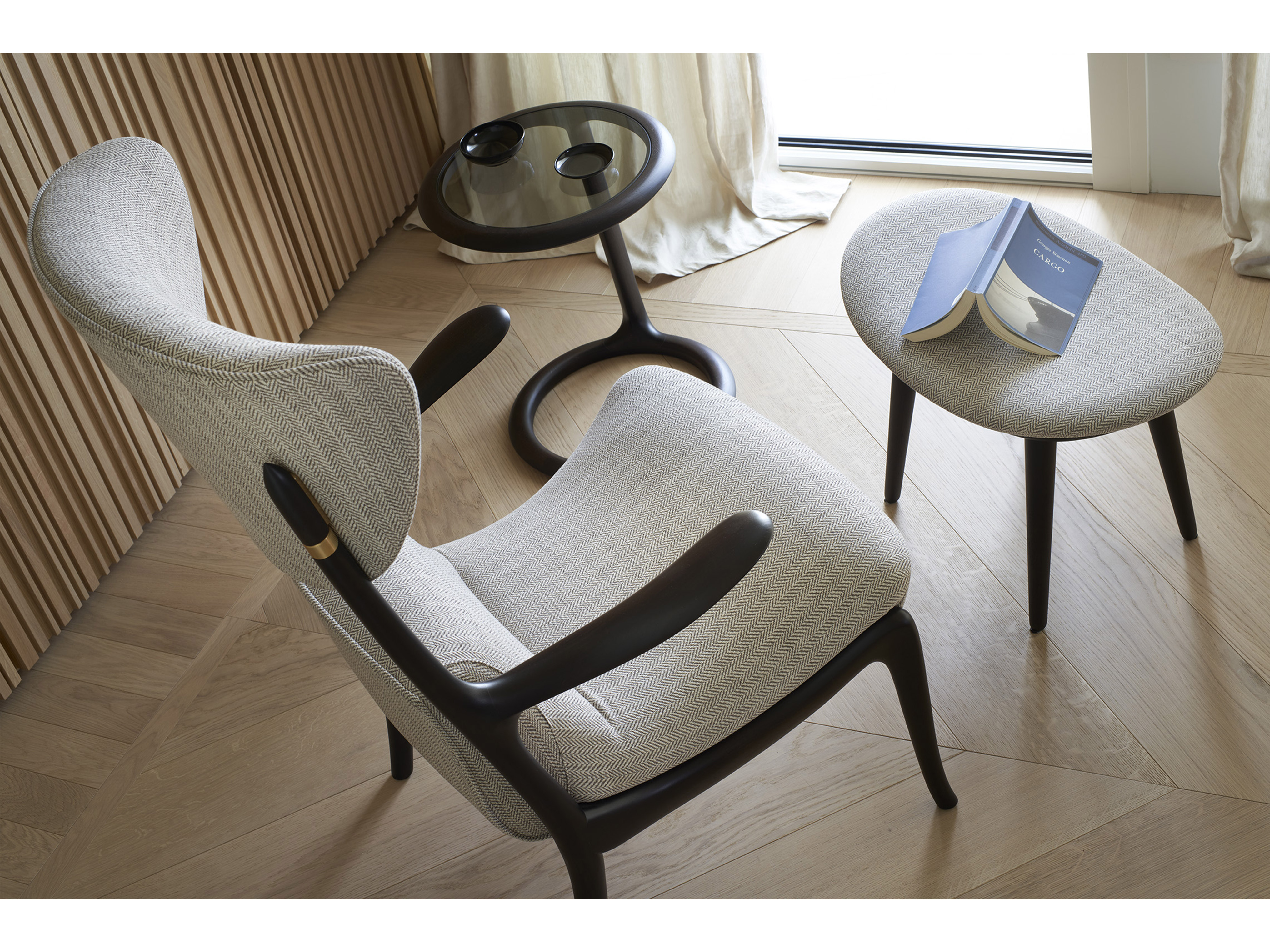 Интерпретируя мечту каждого, кто любит читать, кресло и пуф Star Trek были разработаны Роберто Лаццерони в 1994 году во время его летнего отпуска на Лампедузе. История этих произведений фактически начинается с кресла Франко Альбини «Тре Пецци» и отражает игру перекрестных ссылок. Действительно, «Звездный путь» представляет собой сочетание итальянского и скандинавского дизайна. Его название было придумано сотрудником студии Лаззерони и отражает юмор дизайнера, который хотел заново изобрести дизайн Альбини. Лазерони «играет» с размерами, придавая подголовнику кресла и необычным подлокотникам преувеличенные пропорции. Здесь очевидны искрометная игривость и дерзкая ирония, как говорил сам Роберто Лацзерони. Оригинальный дизайн начался с боковой части стула, которая является ключевой особенностью «Звездного пути», а подголовник завершает изделие. В изделиях Ceccotti Collezioni технология никогда не является самоцелью, а скрывается за чистыми линиями и формами. Здесь, например, механизм крепления подголовника скрыт стыком дерева и латуни и становится декоративным. Чтобы еще больше улучшить это изделие, оно также доступно с отделкой шеллаком под дерево, что придает ему яркий глянцевый вид.
