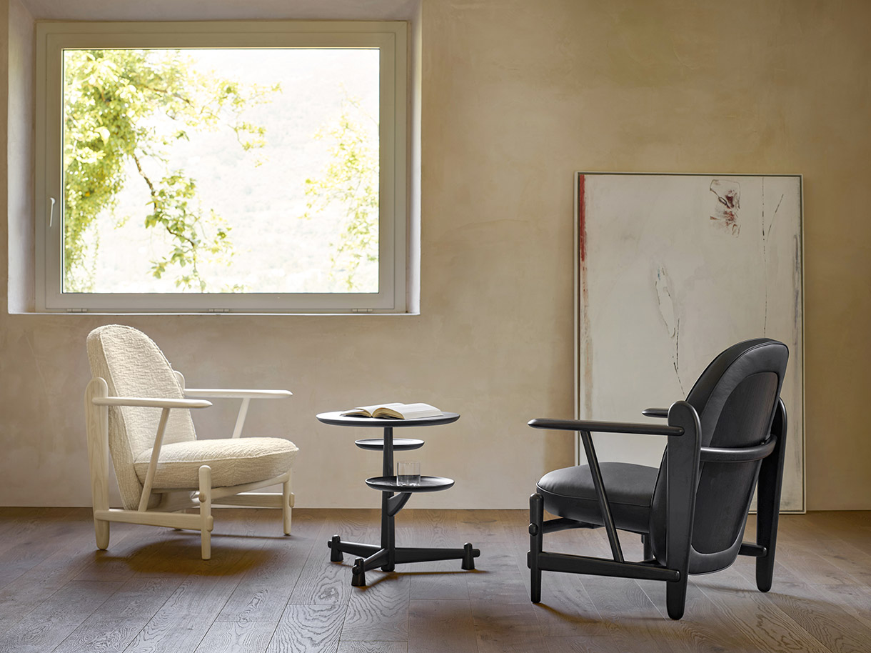 T-Bone дополнен мягкой спинкой и сиденьем, представляющим собой идеальное сочетание комфорта и эстетики: он может быть обтянут тканью, кожей или натуральной кожей и может быть выполнен в различных цветах. Небольшой столик Árbol и кресло образуют мощную харизматическую пару.