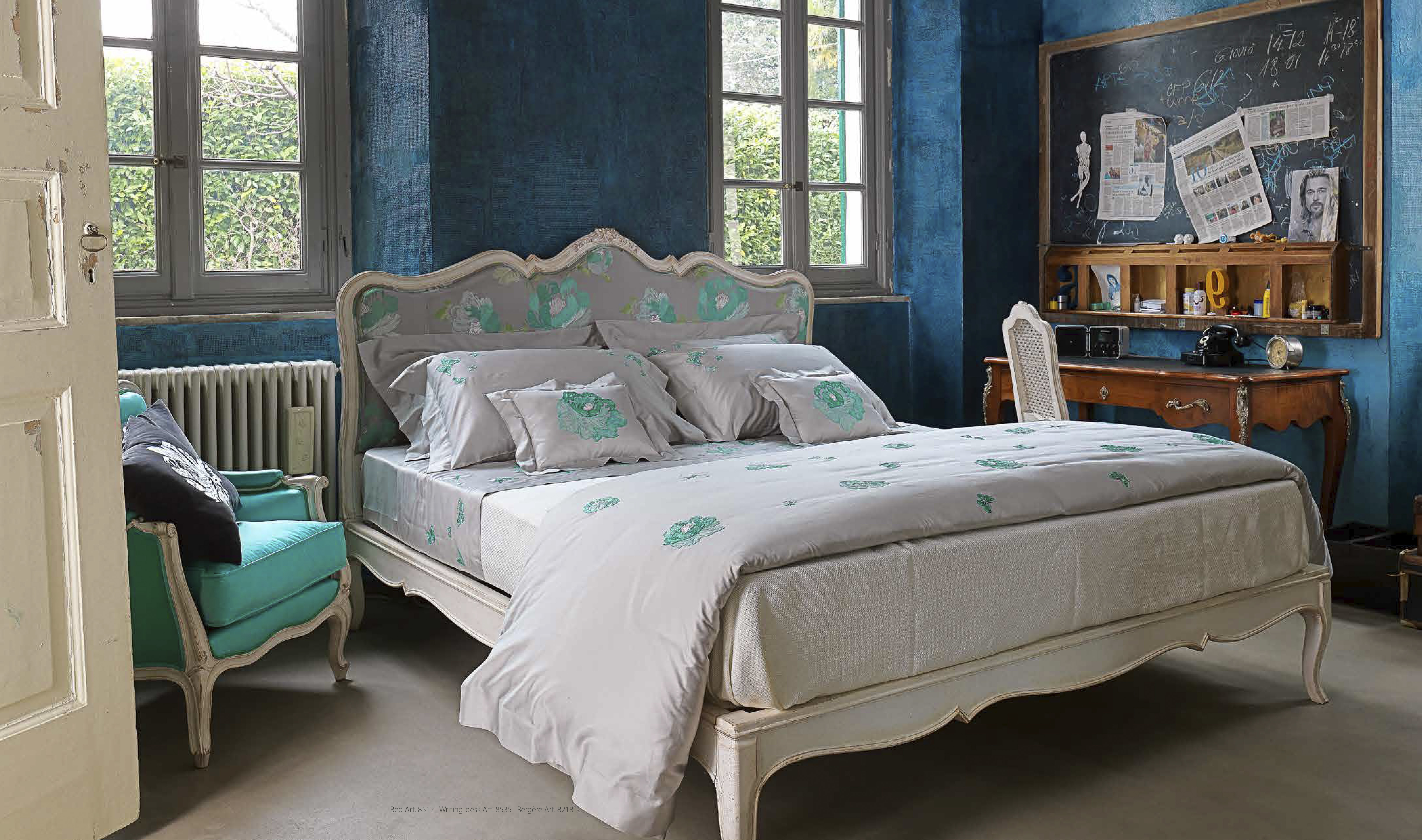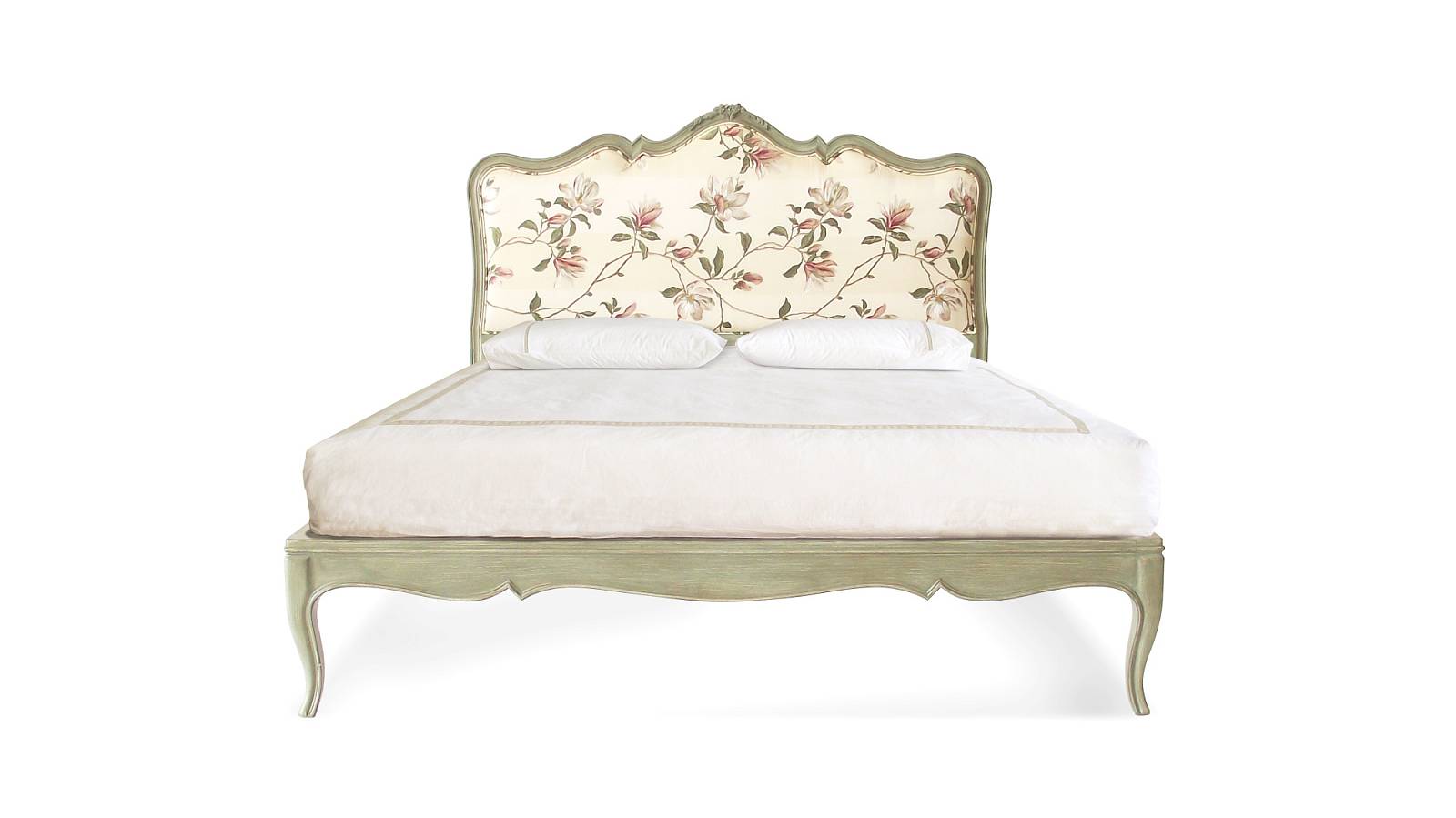 Кровать Людовик XV, мягкое изголовье и деревянный каркас.Дерево бук
