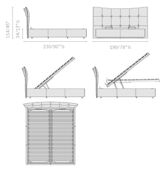 199 х 230 х h 114/34 см. Спальное место 170 х 200 см.