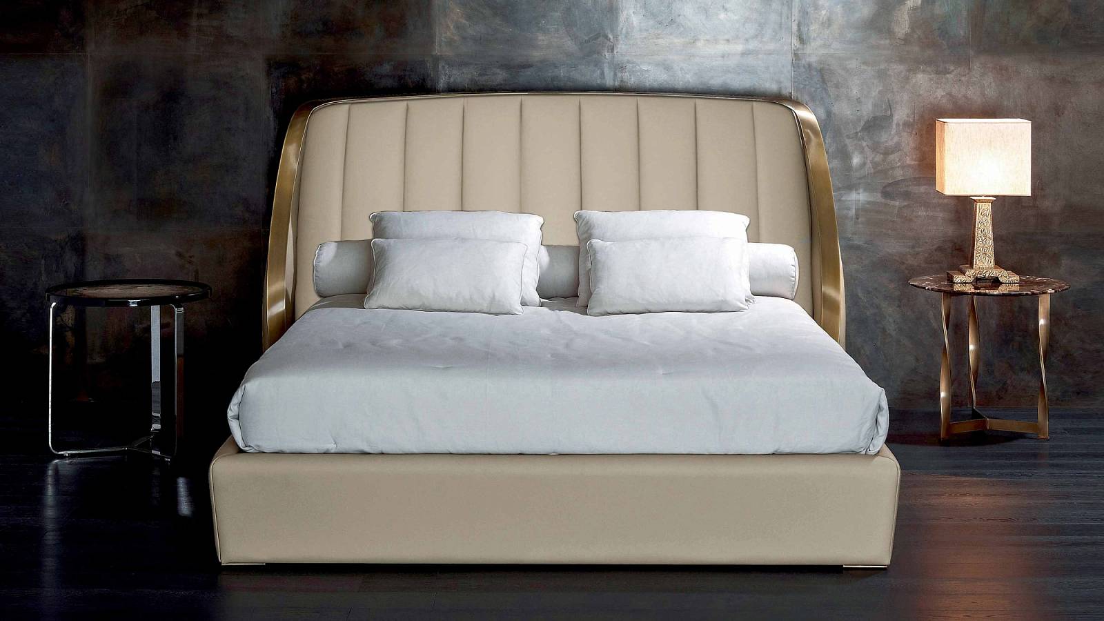 Ткань или кожа. Металлические детали в отделке бронзовая латунь или сатинированная латунь.