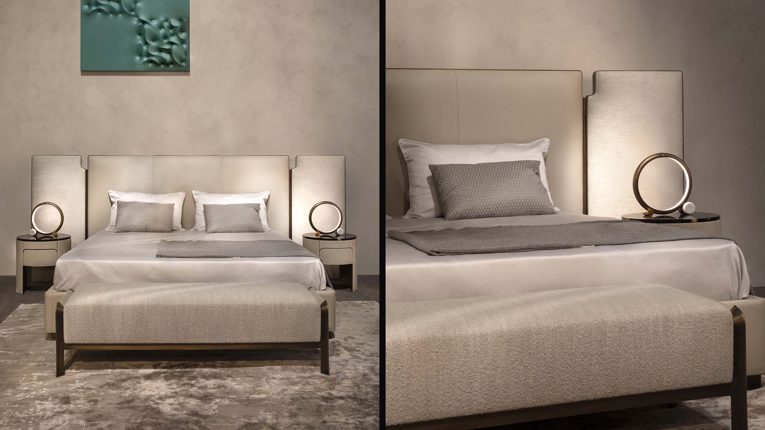 Полностью открытые или прикрытые створки изголовья. Спальное место 200х200 см.