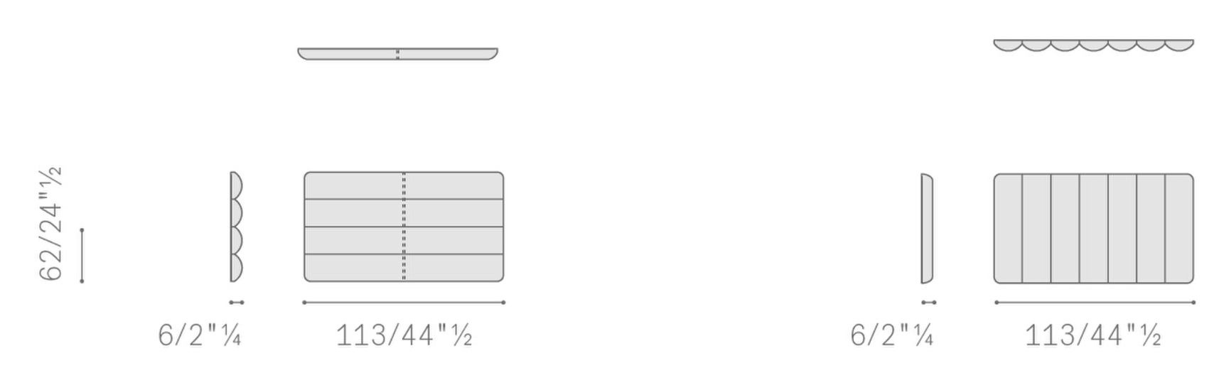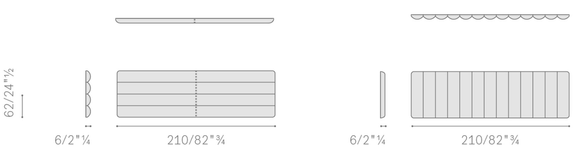 Кожа. Ножки из металла или дерева. Горизонтальная или вертикальная прострочка изголовья–буазери.