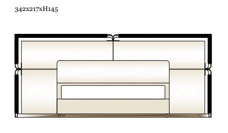 342 x 217 x h 32/145 см. Спальное место 180 или 200 см. Доступен вариант с ящиком для хранения.