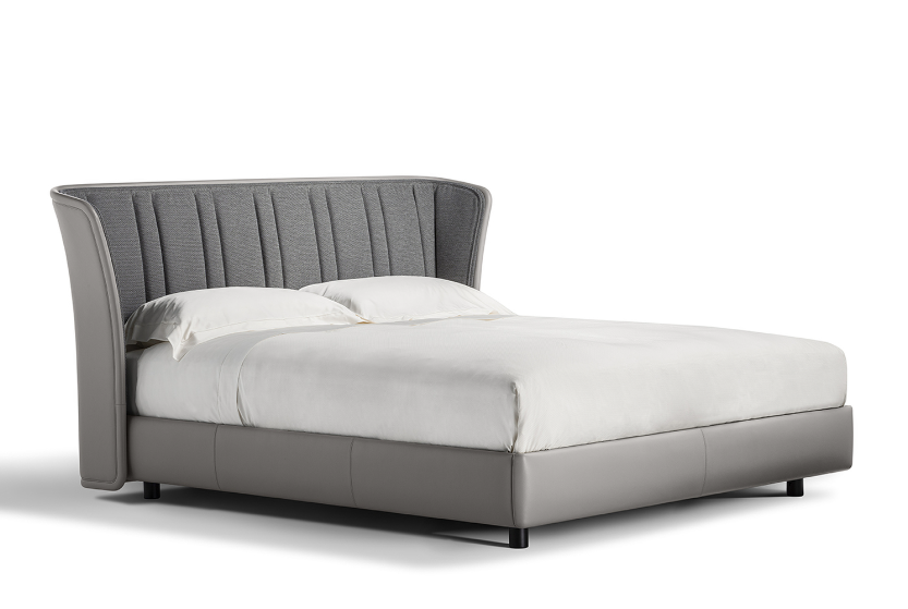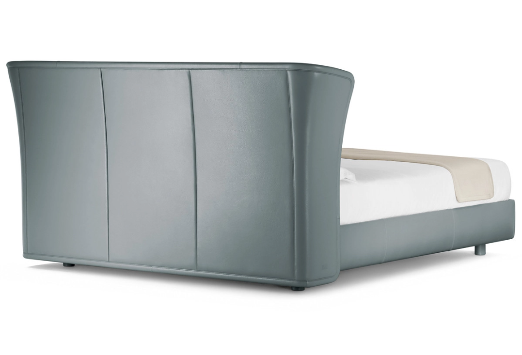 Основание и изголовье с внешней стороны – кожа Pelle Frau Внутренняя сторона изголовья в ткани Poltrona Frau Цилиндрические ножки из металла черного цвета.